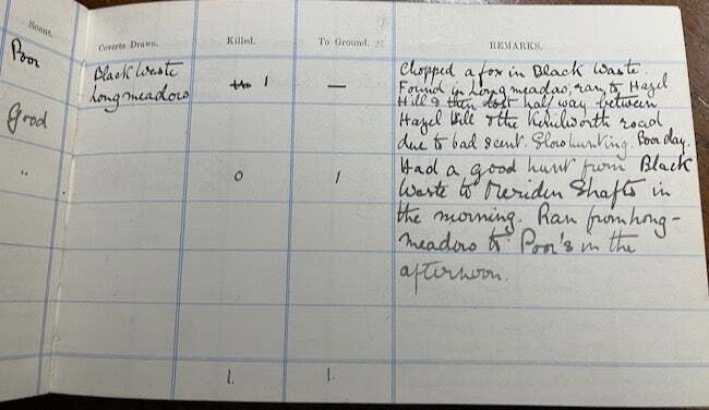 English Hunting Journal Season 1917-1918. From Weeclon Author: [G.F.D. Wade] [Hunting] [Diary] Title: English Hunting Journal Season 1917-1918. From Weeclon Publication: United Kingdom: 1917-1918 Description: Full leather. Oblong soft black leather journal. 8" x 5". Gilt lettered title "Hunting Journal" stamped on the front cover. Reddish marbled end papers and edges. Gilt lined borders on the covers. Front cover has a light creased area. Dates for the entries commence "Oct. 1st, 1917" and end 13.1.20 (January 13th, 1920). Journal consists of 30 pages of hand written entries sectioned in printed columns with headings: "Date", "Hounds", Meet: Distance to it.; Horses; Wind & Weather; Scent; Coverts Drawn; Killed; and To Ground and Remarks. Remainder of journal after January 13, 1920 unused. No removed pages. Name of g. F. D. Wade R.F.A. written on the front blank end paper. Inscription on the verso of the right front flyleaf reads: "The sport of Kings & the limage of war with none of its guilt & only twenty five per cent of the danger. From Handley Cross By R. S. Surtees (sp.?)." Journal covers hunts before the end of World War I November 11, 1918. Under the remarks section are several listed names of people with Military ranks including Maj. Evans, Maj. Beevor (sp.?), Maj. Covy, Maj. Atkinson, Capt. Cox, Capt. Holman and many other names are listed with some difficult to transcribe. Very good. Seller ID: 31750 Subject: England, Sports David A. Hamilton Americana Books Tucker, Georgia Americana Books has been in business since 1993. We are active members of the Antiquarian Booksellers’ Association of America (ABAA), Independent Online Booksellers Association (IOBA), the International League of Antiquarian Booksellers (ILAB), and the Georgia Antiquarian Booksellers Association (GABA). We sell books in all fields but specialize in the subject of "Americana." We offer an assortment of books, ephemera and material relating to the exploration and expansion of America, Native Americans, pioneer narratives, personal memoirs and reminiscences, political movements, law, genealogy and local histories, innovations, conflicts, scandals, oppression, inspiration and many other related topics. We hope our customers will share our enthusiasm and passion for history and will enjoy doing business with Americana Books. Dave Hamilton, Americana Books ABAA Guarantee All books are guaranteed as described. We accept returns if mailed back with 30 days and in same condition as sold. Return postage is buyer's responsibility. Shipping All books will be shipped in the U.S. by USPS Priority Mail and Media Mail. UPS quotes for shipping are also available upon request. We are happy to combine shipping on multiple purchases and provide the best possible shipping cost to the customer . Feedback We leave feedback after receiving buyer's feedback. If you are unhappy with your order for any reason, please contact us before leaving feedback, and we will resolve the problem! This listing was created by Bibliopolis.