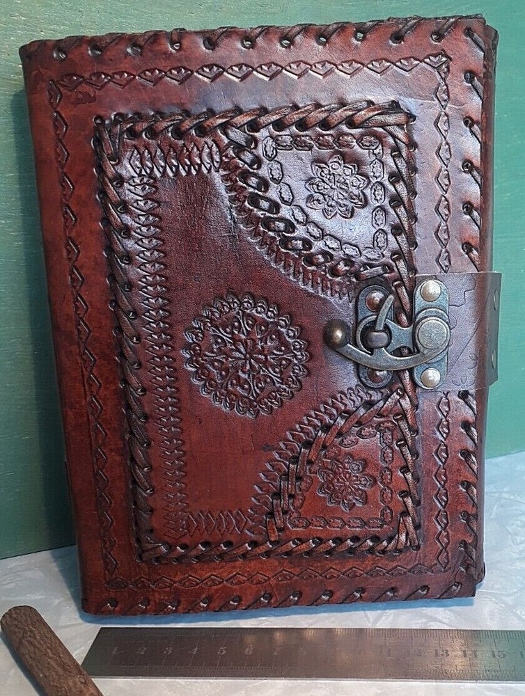 Absolutely love this handcrafted leather journal—the genuine embossed leather feels rich and durable, and the antique finish gives it such character. The C-lock clasp keeps everything secure, and the unbleached handmade paper inside has just enough texture for smooth writing or sketching. Each page feels special, knowing it’s recycled and fair trade. Perfect for writers, artists, or anyone who appreciates tradition and quality. A true treasure!