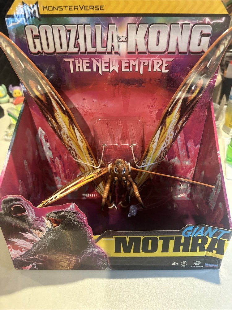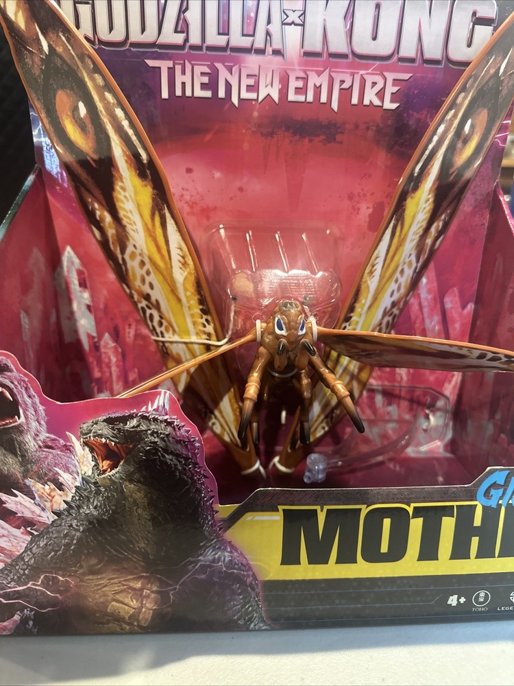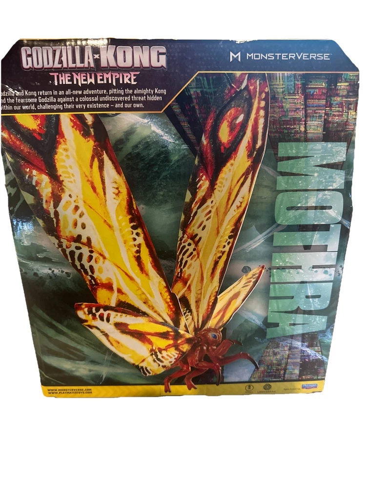 The Giant Mothra 11" Figure from Godzilla vs Kong: The New Empire is a plastic action figure based on the popular Godzilla franchise. Produced by Playmates Toys, this figure is part of the Giant Series and features multiple points of articulation for added playability. Standing at 11 inches tall, this original, unopened packaging is recommended for children aged 4 and above, making it a must-have collectible for any Godzilla fan. The corner of the box where Giant Mothra is written has a crease on it. As shown in pictures. Any questions please ask.