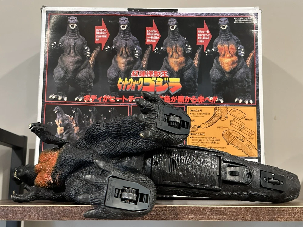 This is a rare Bandai Godzilla toy from 1995 featuring Godzilla vs Destoroyah. It's in great working condition and perfect for any collector or fan of the Godzilla franchise. The toy was manufactured in China and includes detailed features of the iconic monster. This particular version is highly sought after and a must-have for any Godzilla enthusiast. The toy is branded by Bandai and the year of production was 1995. Buy now and add this amazing piece to your collection… Arrives Ready To Operate! 11.5” tall Removable Tail 9.5” Includes the required 8 x AA Batteries. Please see pics for item condition detail close ups. Check out our other auction to scoop up Destotoyah as well.