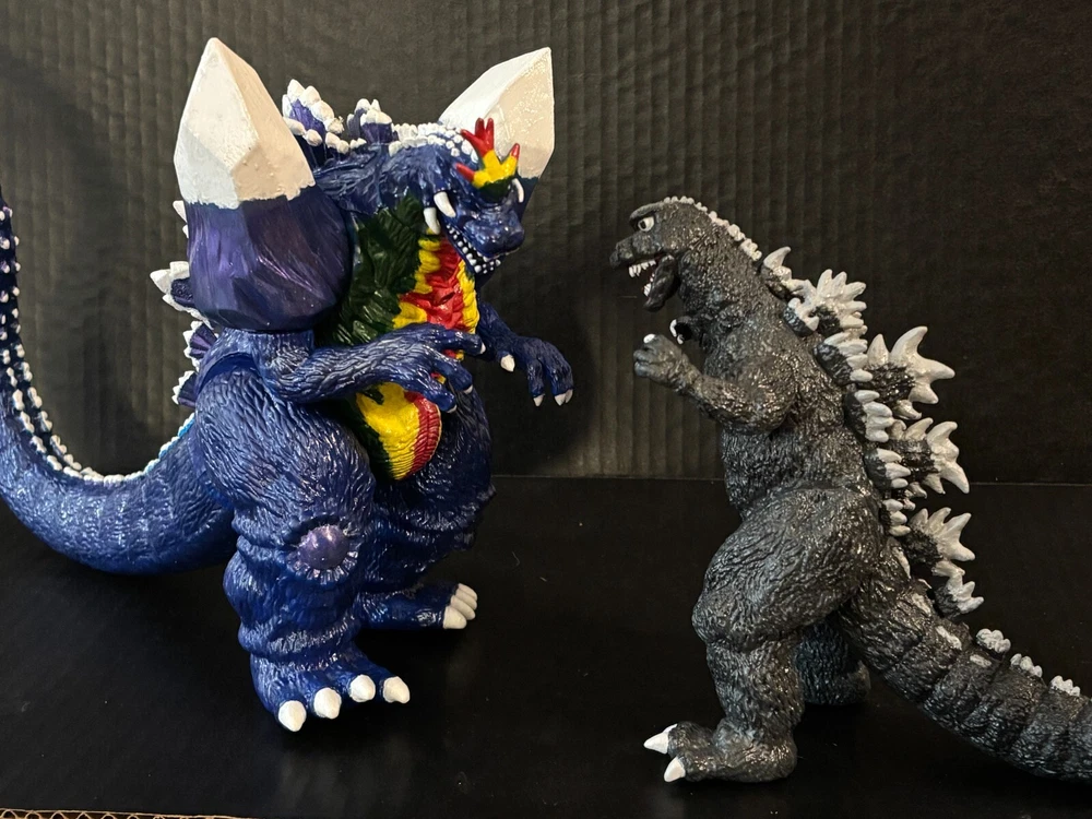 10" Trendmasters Space Godzilla with updated paint scheme, the electronics do not work- there is a missing spring on the lower battery lead connector. The figure was given a renewed/updated paint scheme and was refurbished to look better than new. Please read my customer feedback for proof of my work or contact me pics of my custom figures. The figure will be great addition to any Godzilla collection, the price has been reduced to account for the missing battery spring, I was unable to repair to restore the electronic roar. The listed price is firm and adjusted to reflect the electronics.