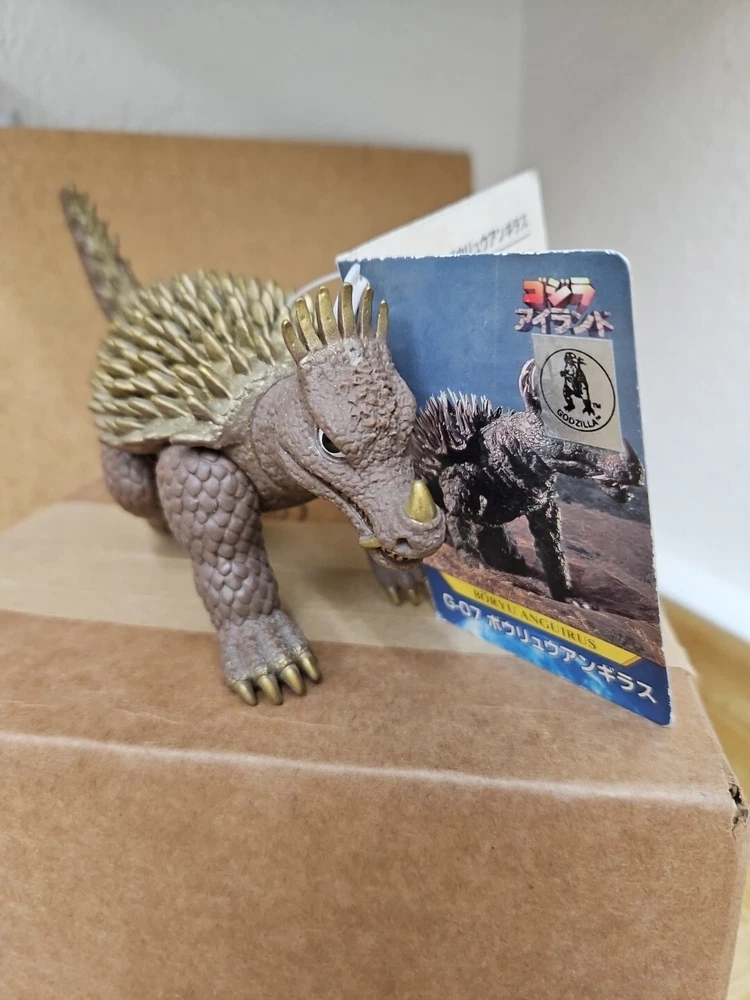 This 1998 Bandai Boryu Anguirus figure is a must-have for any Godzilla fan. Measuring 3.5 inches tall and 8.5 inches long, this toy is perfect for kids and collectors alike. Made in Japan, it features intricate details that are sure to impress. The figure comes with a tag and is suitable for ages 3 and up. Whether you're adding to your collection or looking for a gift, this Godzilla Island G-07 toy is sure to be a hit. Don't miss out on your chance to own this unique piece. Clean figure with the tag. From a smoke-free home. For sale in the USA!!