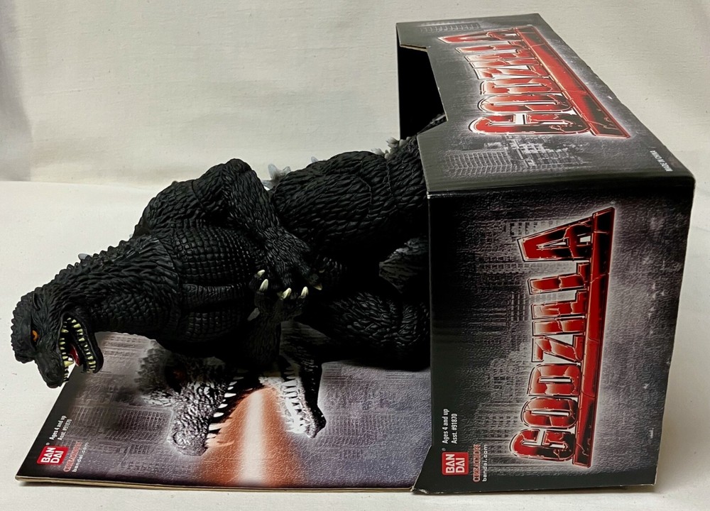This is GODZILLA, a 2007 Bandai Action Figure that is brand new in it's Display Box. Absolutely mint! The head, legs and tail swivels. 10" high, 12-1/8" across (from tip of nose to end of tail). #91870. UPC: 045557918712. Manufactured by Bandai America Inc, CA. © 200 Toho Ltd. Condition: Mint. Shipping by USPS Ground Advantage, F edEx Ground or FedEx Home Delivery, or UPS Ground.