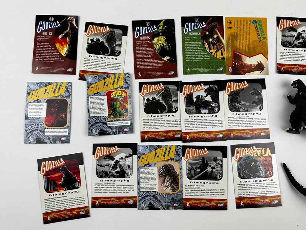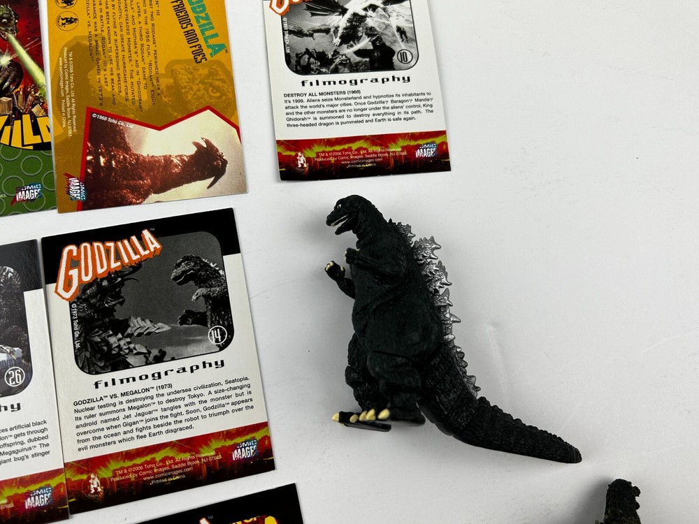 GODZILLA 3" Figure + 3" Figure + 2" Figure Gashapon Trading Card 19pc Lot contains everything photographed - Two different 3" figures and a sealed 2" figure along with 16 assorted trading card in fantastic condition from smoke free pet free home Check out the other vintage Godzilla items I have listed! Please mouse over and zoom in on all hi-res photos! This item will be packaged VERY well. Payment is due within 24-48 hours purchase. If this doesn't work for you, please message me before you buy for approval. Unless other arrangements have been made, transaction will be cancelled due to buyer non-payment at the end of the 4th day.