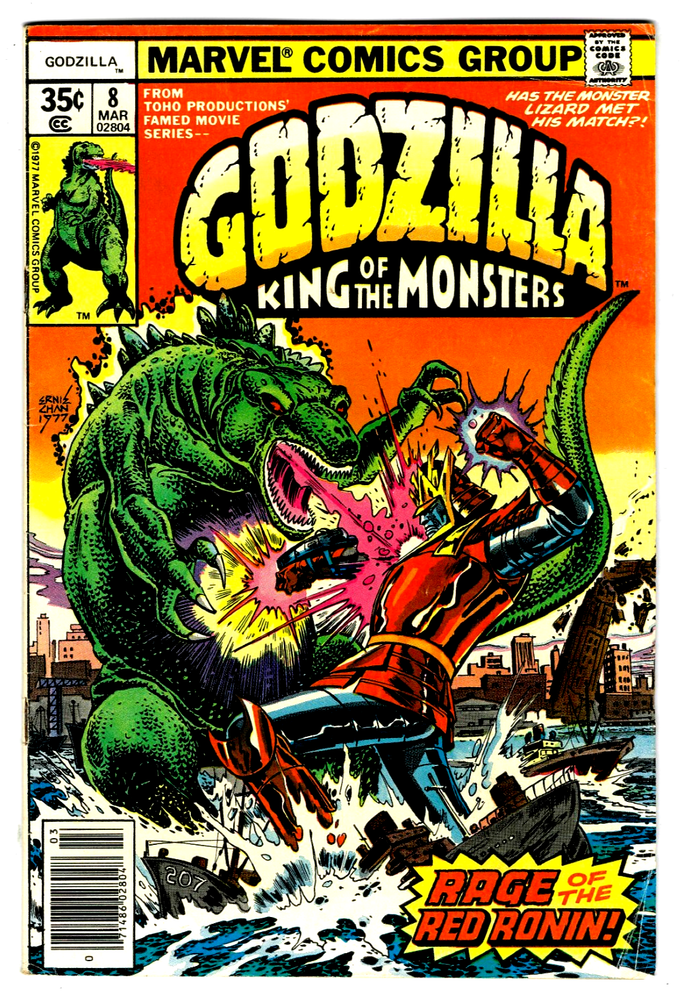 GODZILLA #8 From MARVEL comics. Grades between FN+ and FN/VF condition. Average condition comic with a glossy cover and wear from handling consistent with this grade. Cover and Centerfold are attached. Interior pages are complete and tan colored. (Please review the scan carefully). Please view carefully all pictures and please use your judgment on the grade of each comic book! I am not a professional grader. All comics are boarded and bagged for safe delivery! Stored in a non smoker home. We do combine shipping for multiple items.