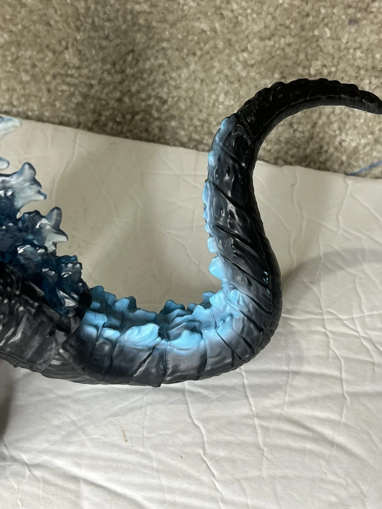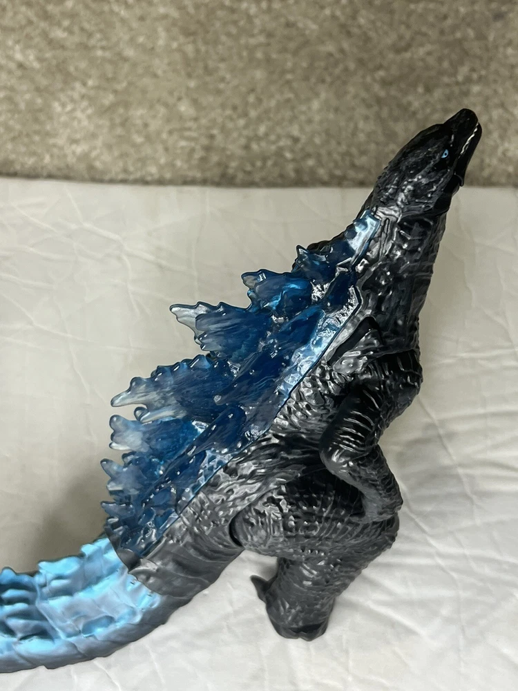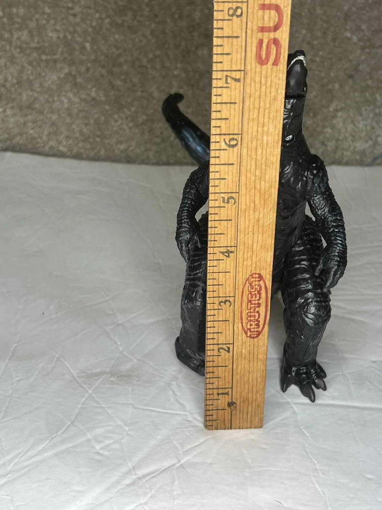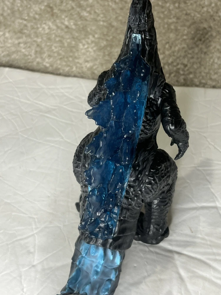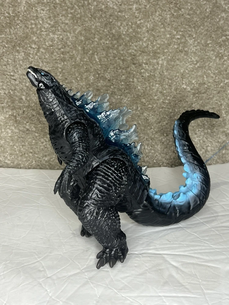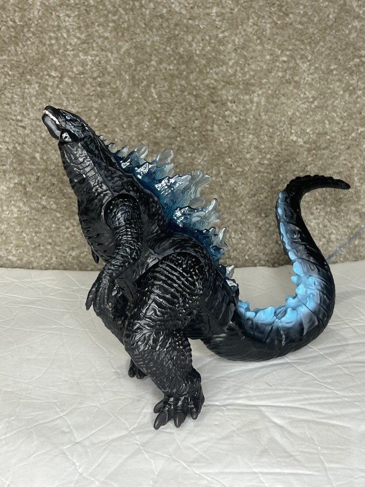 This is a 7-inch action figure of Godzilla manufactured by Playmates Toys in 2021. The toy is based on the Godzilla character from the Toho universe and is part of the Battle Roar series. The figure features sound effects and is designed to replicate the iconic roar of the monster. This is a used item and is in good condition.