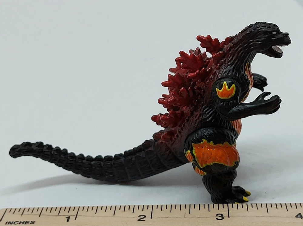 GODZILLA Burning Godzilla FIRE Action Figure 3" Tall GASHAPON KO bootleg Kaiju. Owned by Adult by Adult collector. Moving joints.