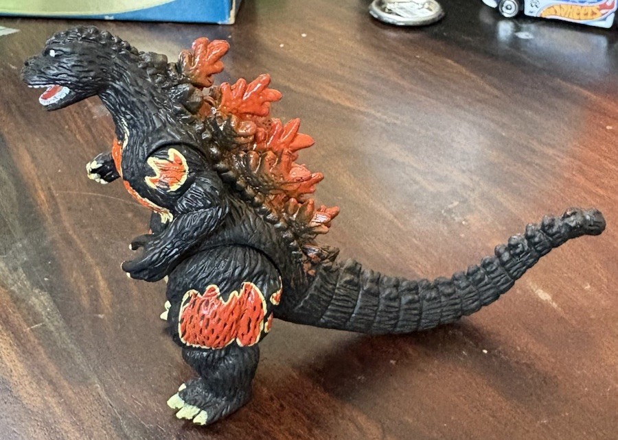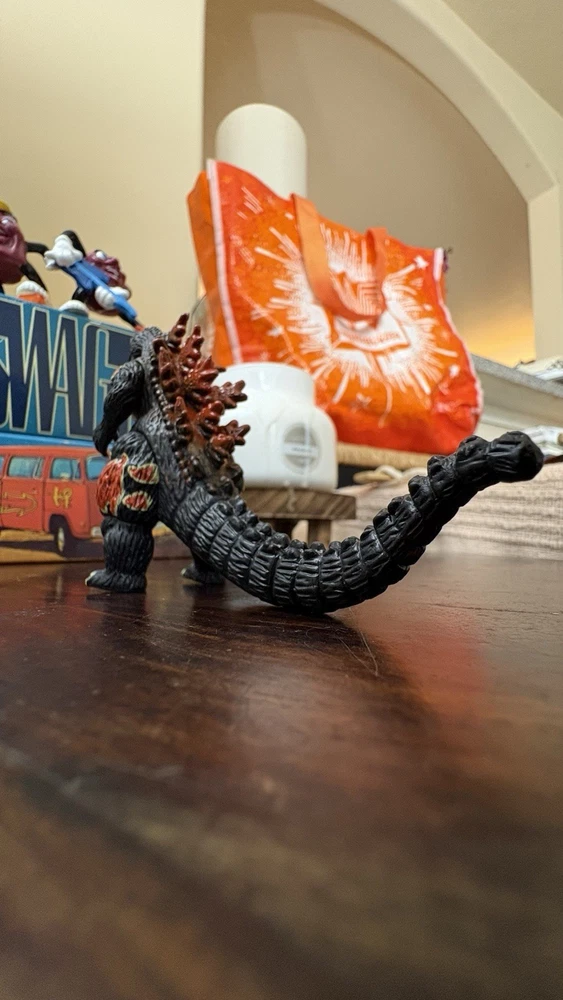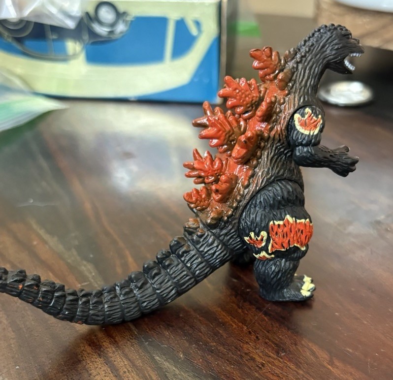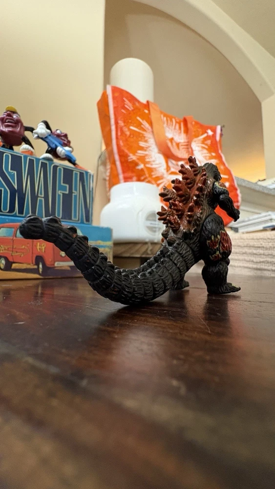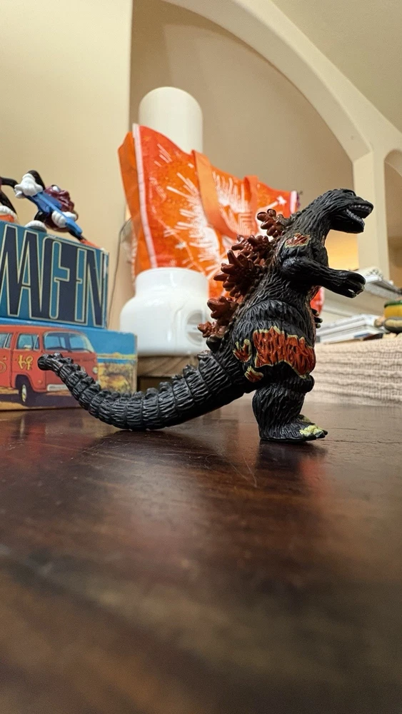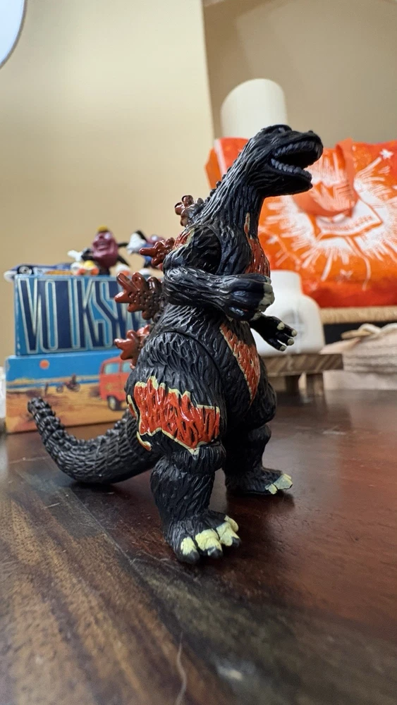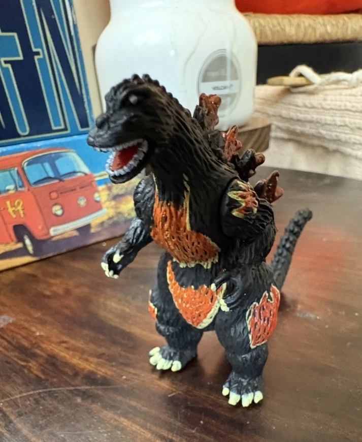 This is a rare and highly sought-after Godzilla action figure, featuring the iconic monster in its burning form. Measuring at 3 inches tall, this figure is perfect for collectors and fans of all ages. Its unique design and intricate details make it a must-have addition to any Godzilla collection. Made in China, this action figure is in excellent condition and is sure to please any fan of the classic monster. Whether you're looking to add to your collection or just want a cool piece of Godzilla memorabilia, this figure is a great choice. Don't miss out on the chance to own this rare and exciting item!