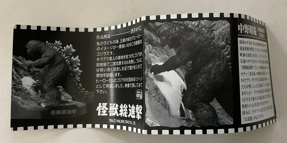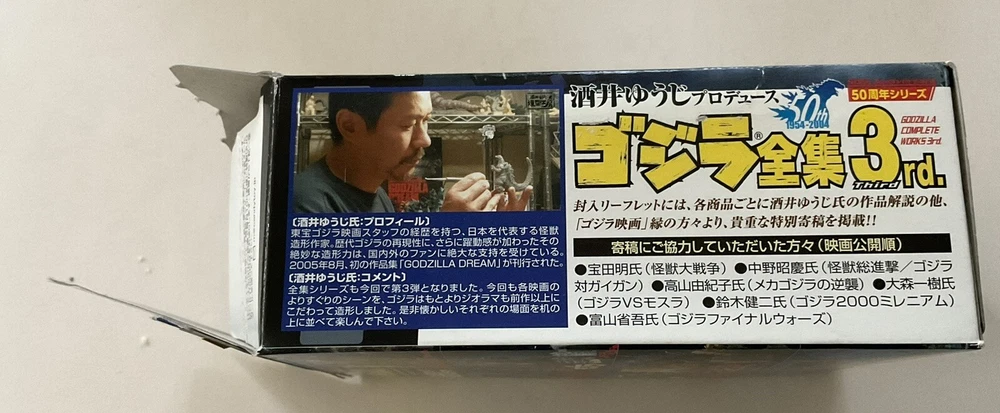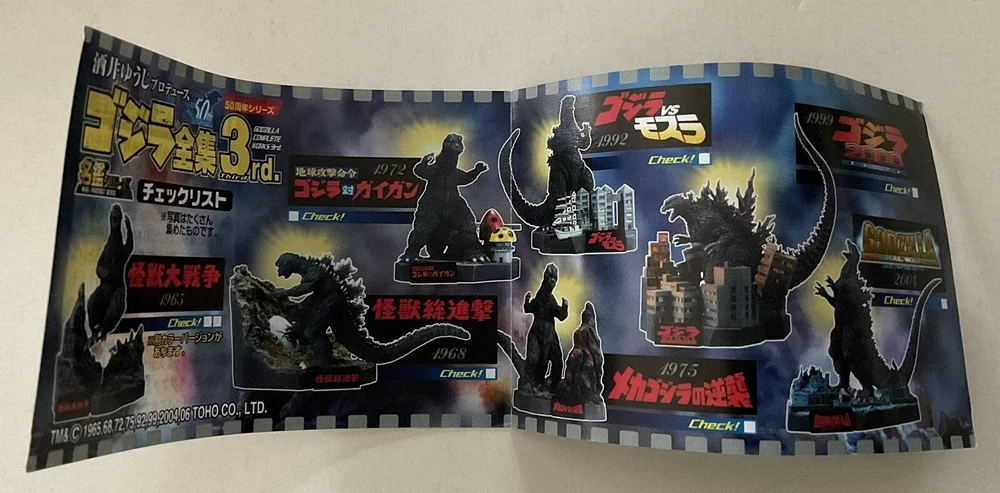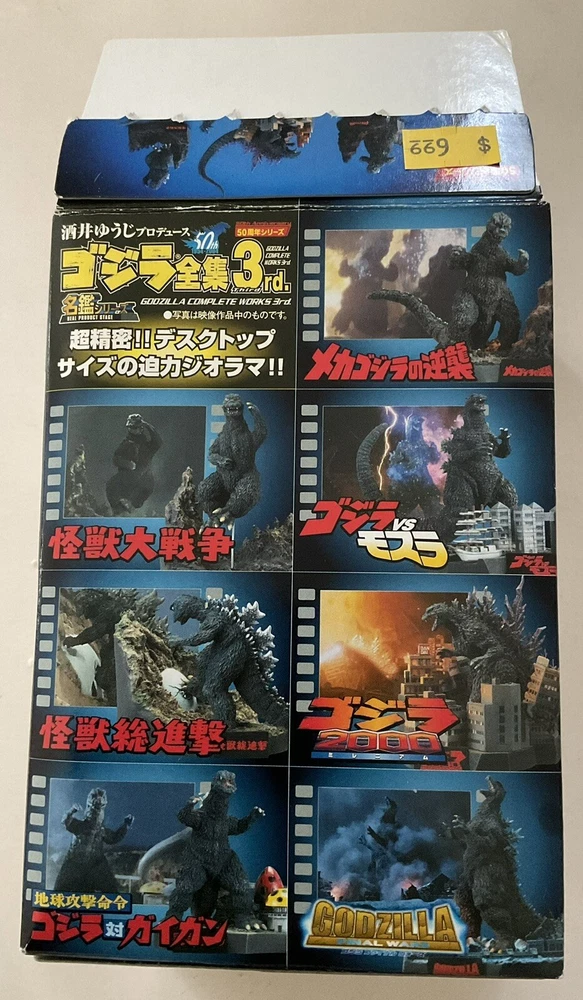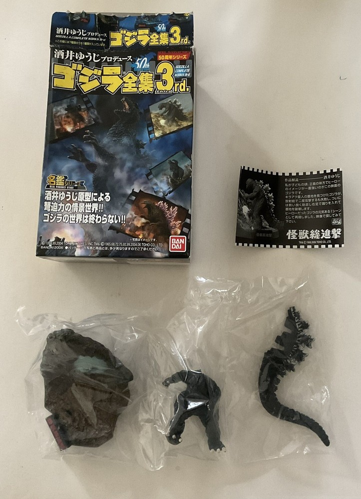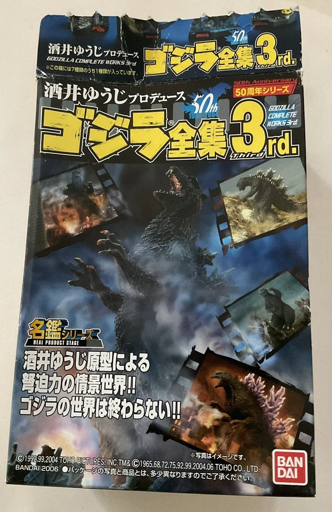 GODZILLA COMPLETE WORKS 3” DIORAMA Released in 2006 by Bandai. From the 3rd Series of 3” Godzilla classic movie dioramas. Sold in Japan in candy mystery boxes (measuring 3 3/4” X 5 3/8” X 2 1/4”). This one contains a scene from 1968’s “Destroy All Monsters” (Japanese: 怪獣総進撃, Kaijū Sō-shingeki, lit. 'Monster All-out Attack'), based on a sculpt by Yuji Sakai. This lot includes the opened box & the “paperwork” included for this particular piece (in Japanese text); does not include the candy. Condition is Near Mint or better. New & still unassembled in its original plastic bag. Please see photos.