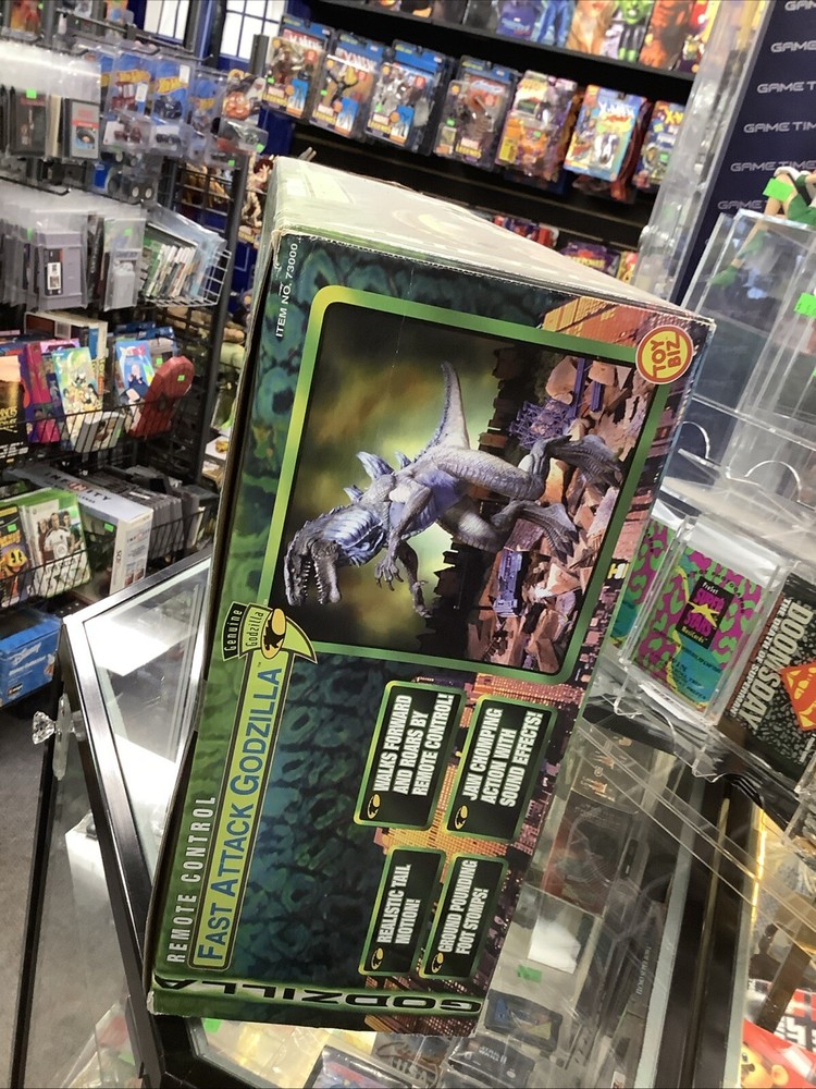 This Godzilla Fast Attack figure from ToyBiz is an absolute gem for collectors! The 1998 vintage piece is packed with incredible detail, making it a standout display or play item. Still in its original box, it’s a rare find that any Godzilla enthusiast would love. The condition looks fantastic based on the photos, and coming from a trusted shop with decades of experience just adds to the appeal. A must-have for fans of classic monster toys!