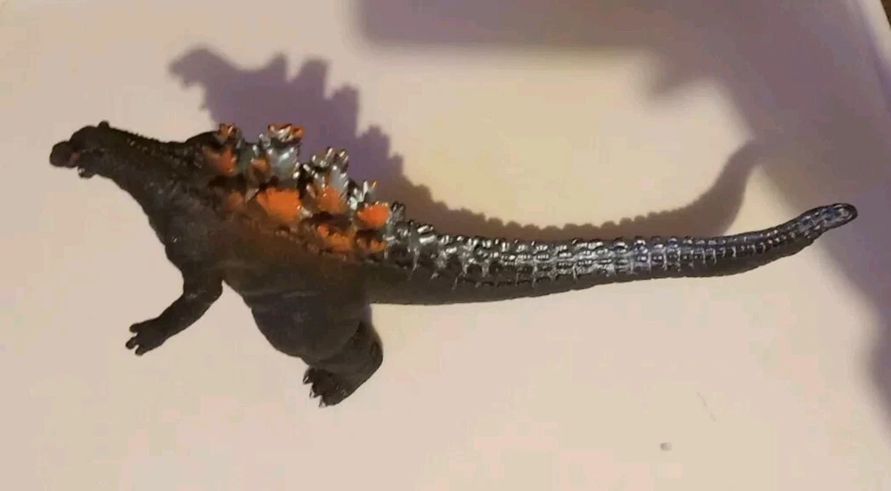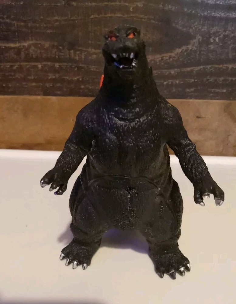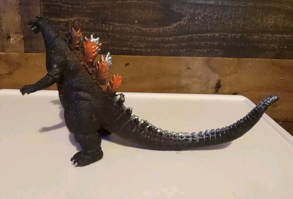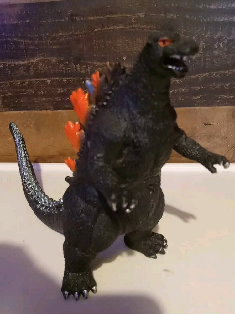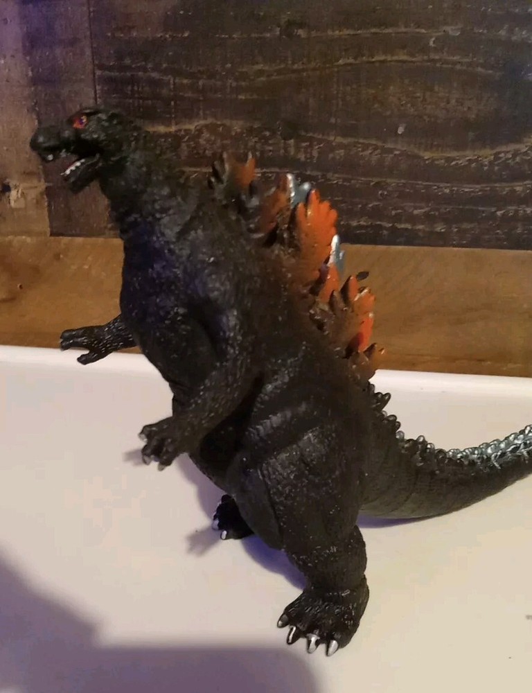 Used in great condition * 1 claw nail missing* See pics Out of my son's collection He's been collecting about 10 years. This 1s a duplicate we got by mistake 🔥 GODZILLA 🔥 Figure About 6" tall x about 10" Long Made of soft vinyl plastic, almost plushy inside the middle Great option for kids ! Nothing super sharp or hard , like most of the displayable Godzillas . Black with orange and light blue back spikes long his tail. Red eyes. White nails on his claws and toes . 🔥 Check out our other Godzilla items listed 🔥