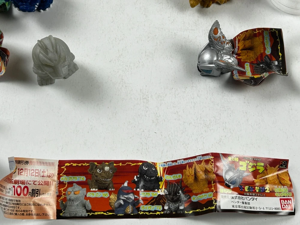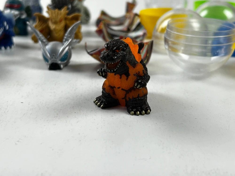 GODZILLA Finger Puppet Gashapon Capsule Toy 10pc Lot Bandai Japan Japanese contains all figures photograhed. 9 of the 10 are in their original capsules with checklists. Figures measure about 1" x 1.5" except the Burning Godzilla measures 2" tall. In fantastic adorable condition from smoke free pet free home USA SELLER Check out the other vintage Godzilla items I have listed! Please mouse over and zoom in on all hi-res photos! This item will be packaged VERY well. Payment is due within 24-48 hours purchase. If this doesn't work for you, please message me before you buy for approval. Unless other arrangements have been made, transaction will be cancelled due to buyer non-payment at the end of the 4th day.
