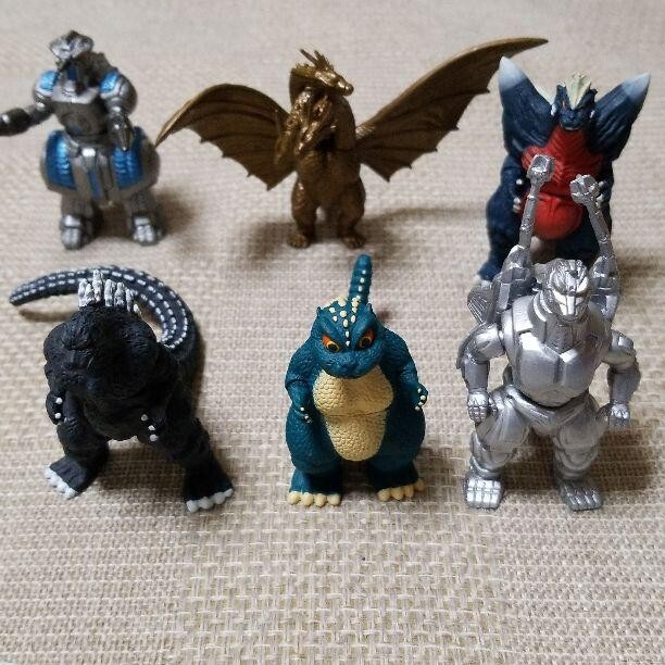 This Godzilla figure set is a must-have for collectors! Rare and well-preserved despite long storage, these six figures are tough to find now. Grab them before they're gone—check other listings to secure yours fast!