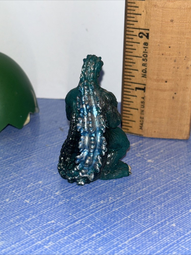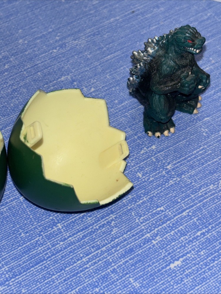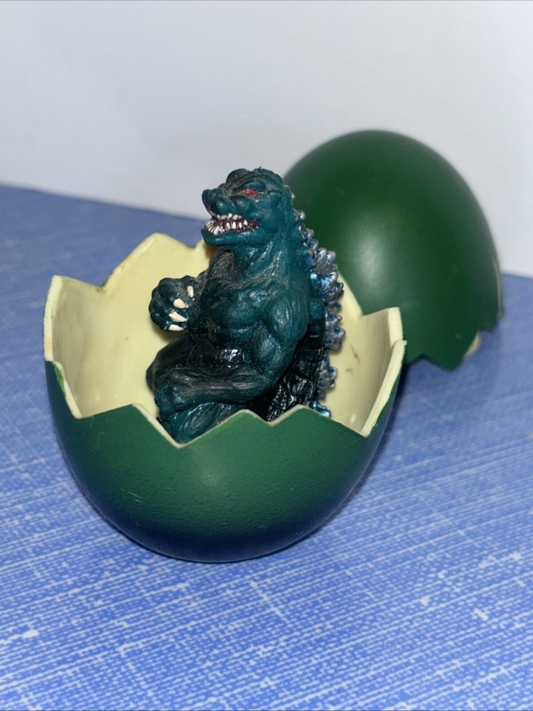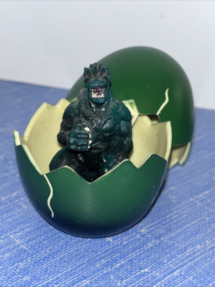 The product is a vintage 1993 Trendmasters Godzilla action figure from the Animated Adventures series. It comes with a hatching egg and is made of plastic. The figure represents Godzilla, a green character from the Godzilla franchise. It is an original licensed reproduction and is suitable for ages 4 and up. This collectible item is based on the Godzilla TV show and is part of the Movies theme.