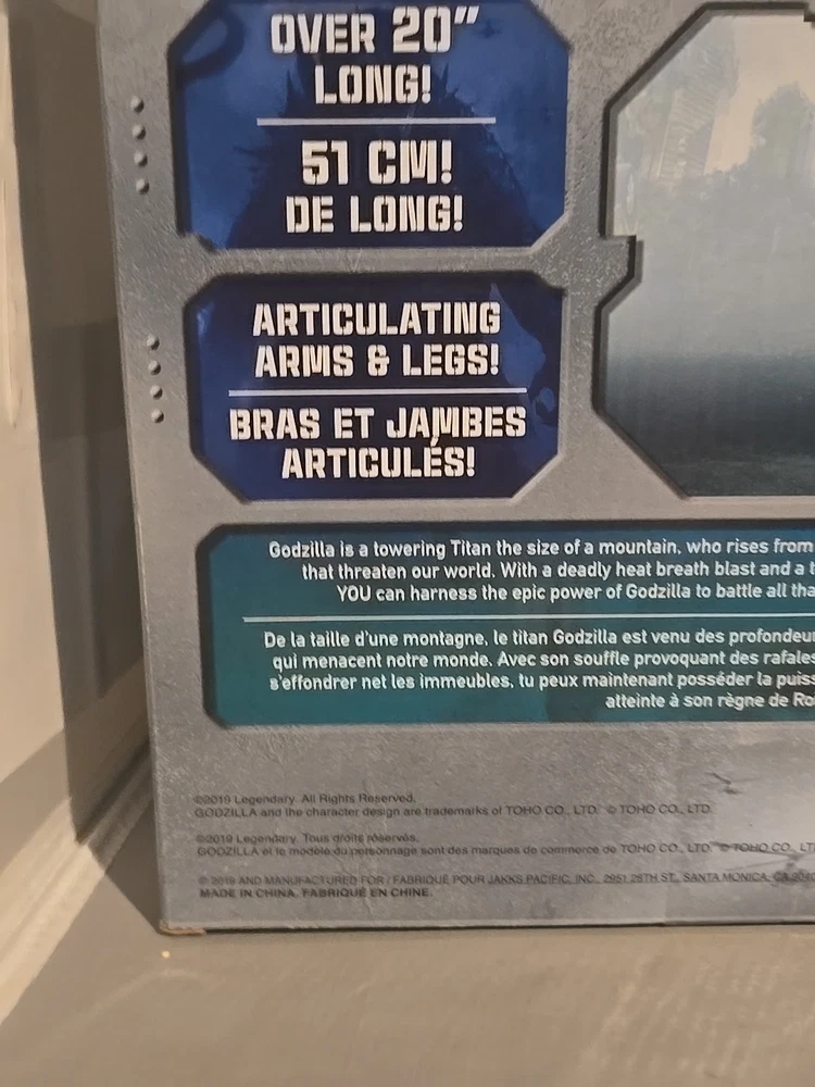 Godzilla: King of the Monsters Jakks Pacific - 2019 Brand New in Sealed Box . Box has some damage, but Godzilla is still tethered down. Please see pictures for condition. Shipping : USPS or Fed-Ex Ground : $14.99 (Fast & Very Well Protected). USPS Priority : $26.99 (Very Fast & Very Well Protected). This will be shipped in a Box, padded with Styrofoam and/or Bubble Wrap to protect the integrity of the product. I will gladly Combine Shipping if buying more than 1 item. If the cart system isn't working please notify me and I will adjust accordingly.