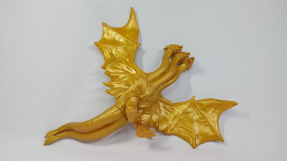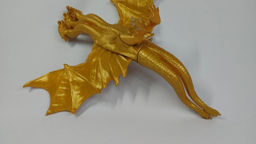 This 12-inch GHIDORAH action figure from the Godzilla King Monsters series is a must-have for fans of the classic monster movie franchise. With intricate details and high-quality construction, this figure is perfect for collectors and kids alike. GHIDORAH, also known as the King of Monsters, is one of the most iconic creatures from the Godzilla series. This action figure features several points of articulation, allowing for dynamic posing and play. Whether you're recreating scenes from the movies or inventing your own adventures, this GHIDORAH figure is sure to impress.