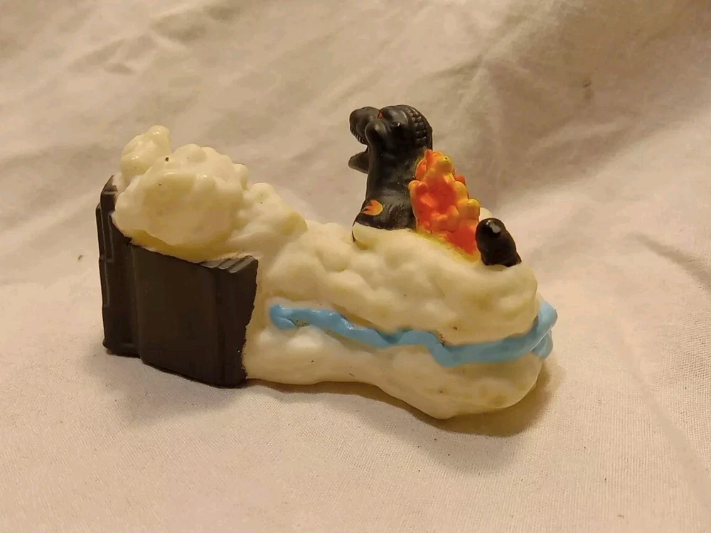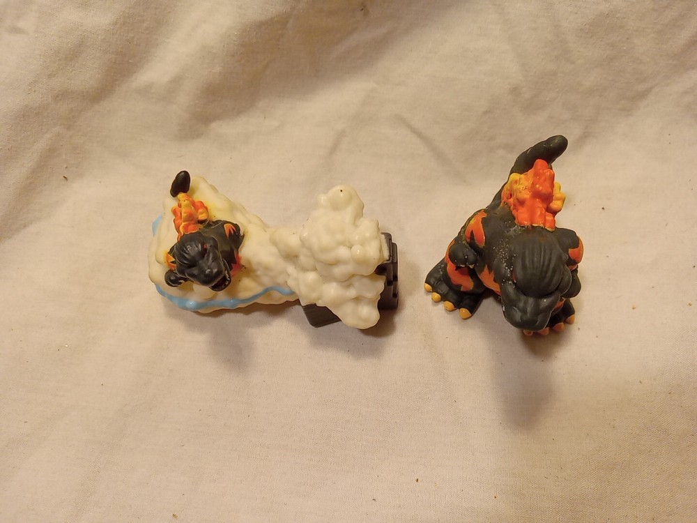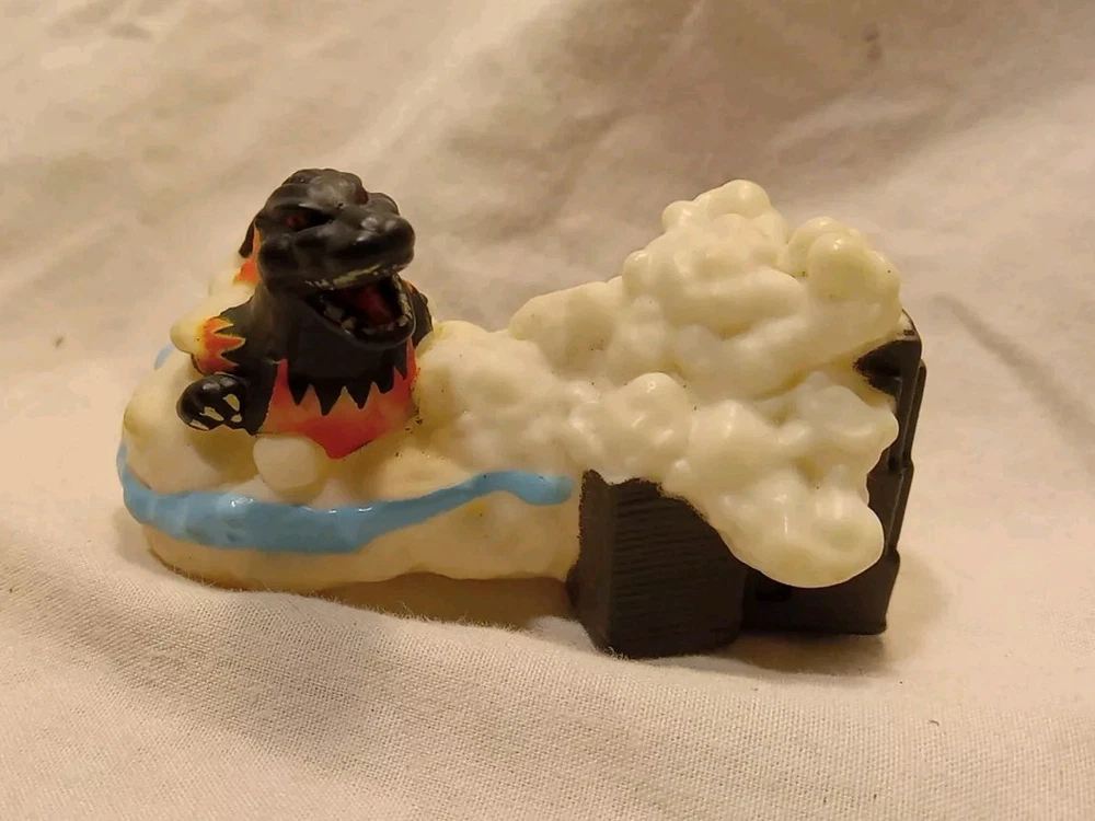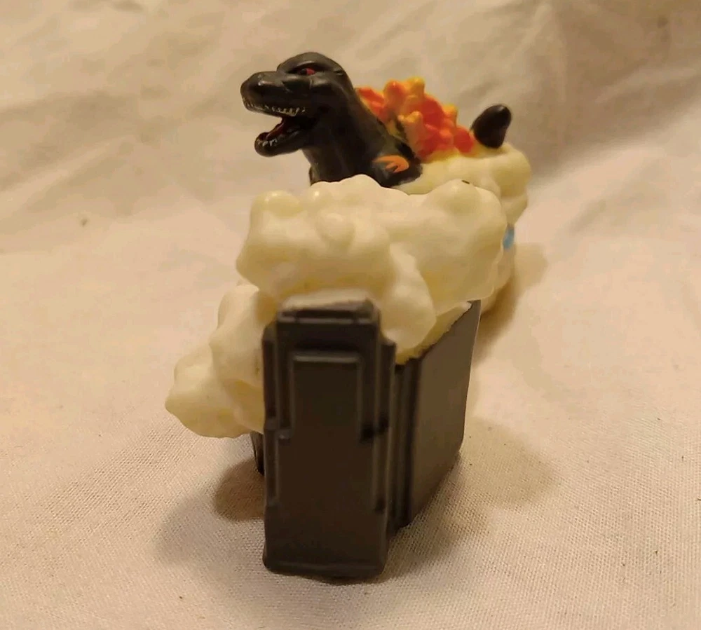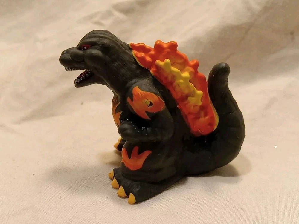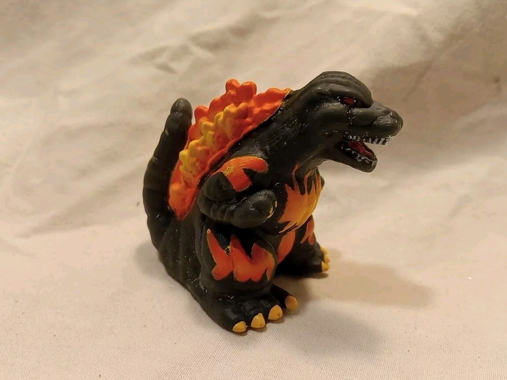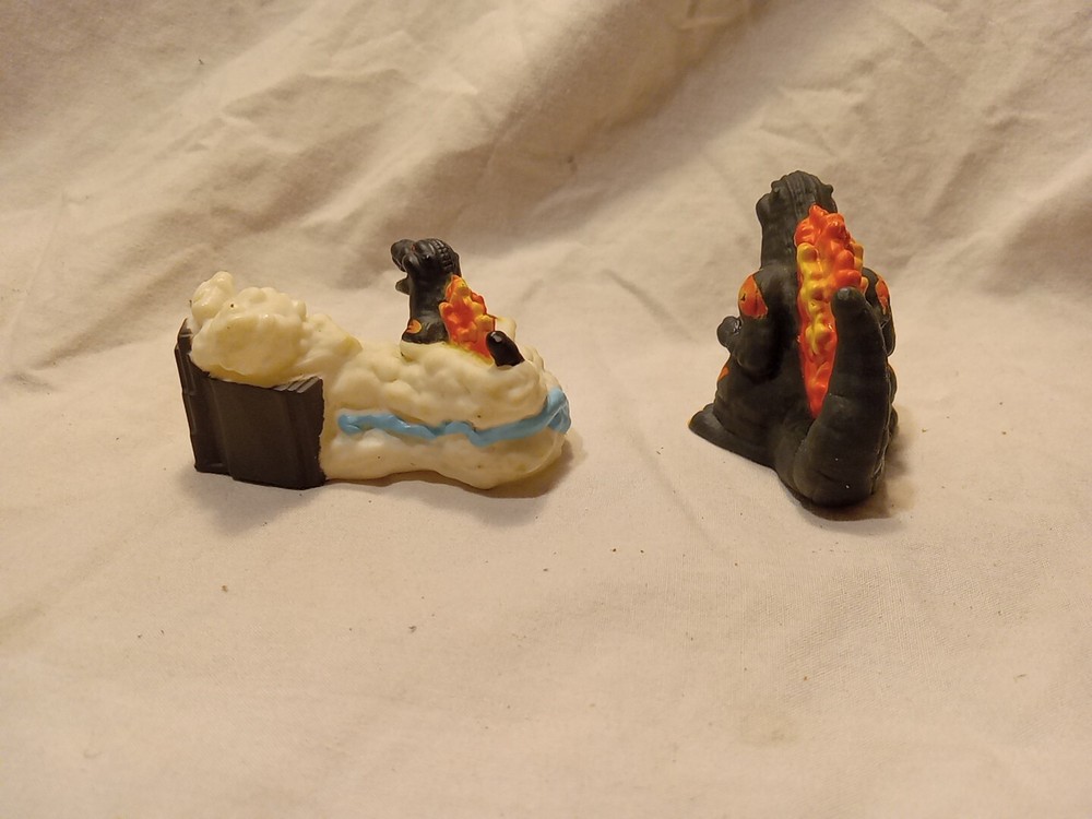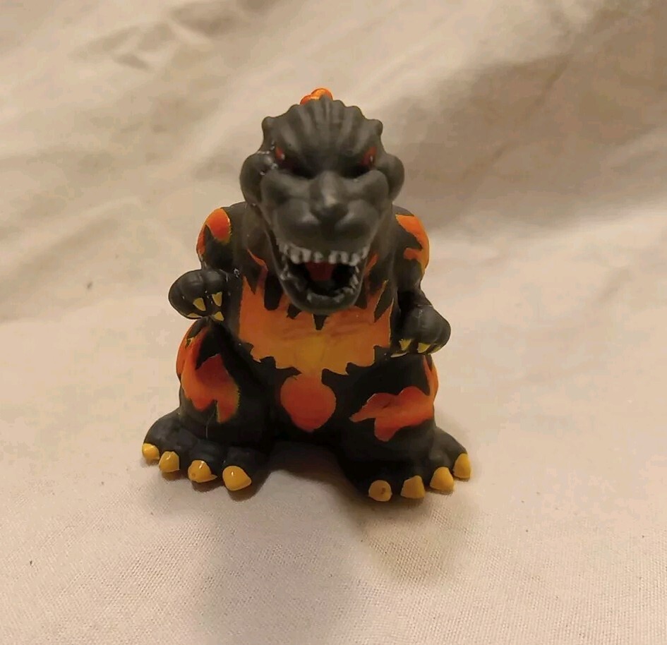 Uses in great condition GODZILLA MINI FIGURES 2 included ☆Previously from Blind Bags☆ This is a small figure of the 1995 version of Godzilla, part of a set made by the Japanese company Huckleberry. *** info found on Google Flaming Godzilla 2" wide , front to back base 2" tall at head 1 1/2" wide , front foot to foot Smoking Godzilla & Building 3" wide front 1 1/2" tall bottom to top of head 1" wide front to back Holes in both , so some sold as Finger Puppets But typically displayed as figures. Thin plastic 🔥 Check out our other Godzilla items listed 🔥