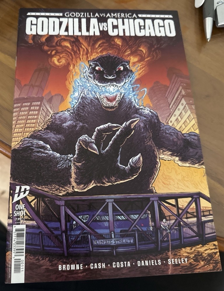 Comic Stories: Godzilla Does Chicago, Blue Line Sign, Chi Godzilla, Godzilla Versus Chicago...