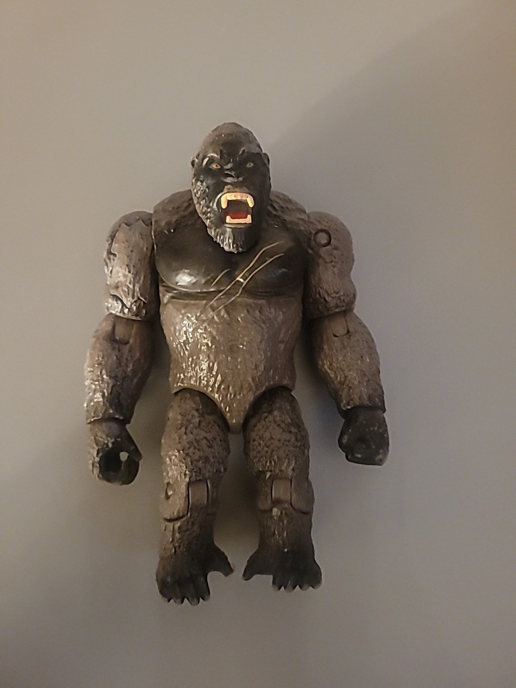 The product is a 6" King Kong action figure from the movie "Godzilla vs. Kong" manufactured by Playmates Toys in 2021. This super posable figure showcases King Kong in his Antarctic form from the Monster-Verse franchise. The figure is made of plastic and features a multicolor design. It is a licensed original reproduction and is part of the TV, Movie & Video Games theme, specifically from the Godzilla franchise.