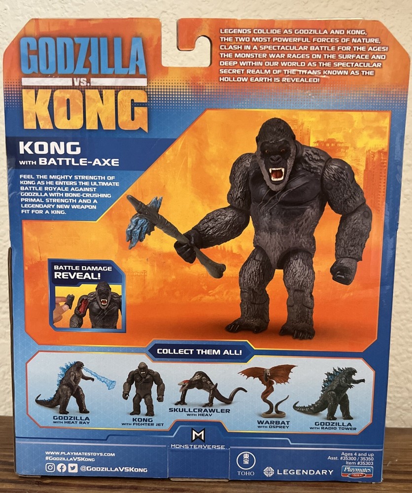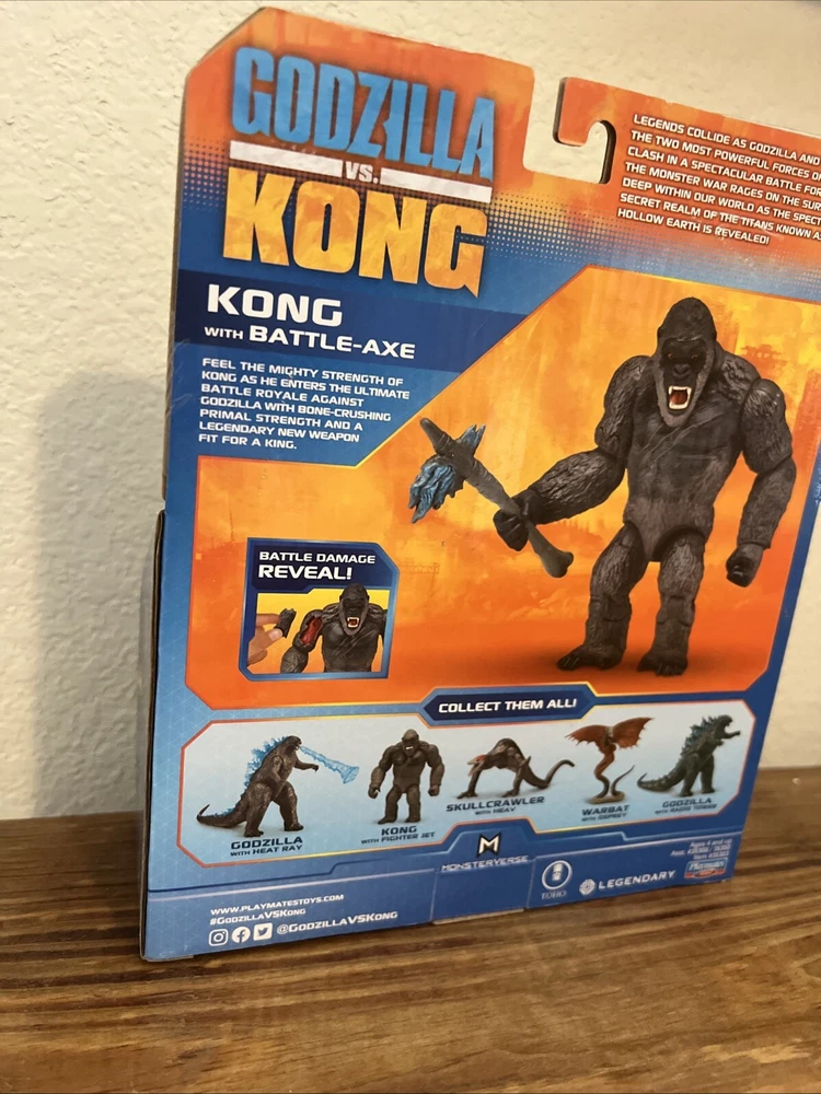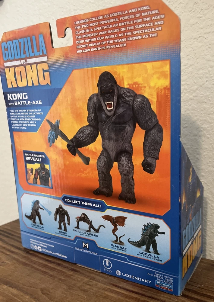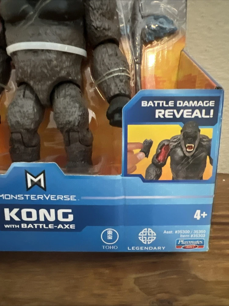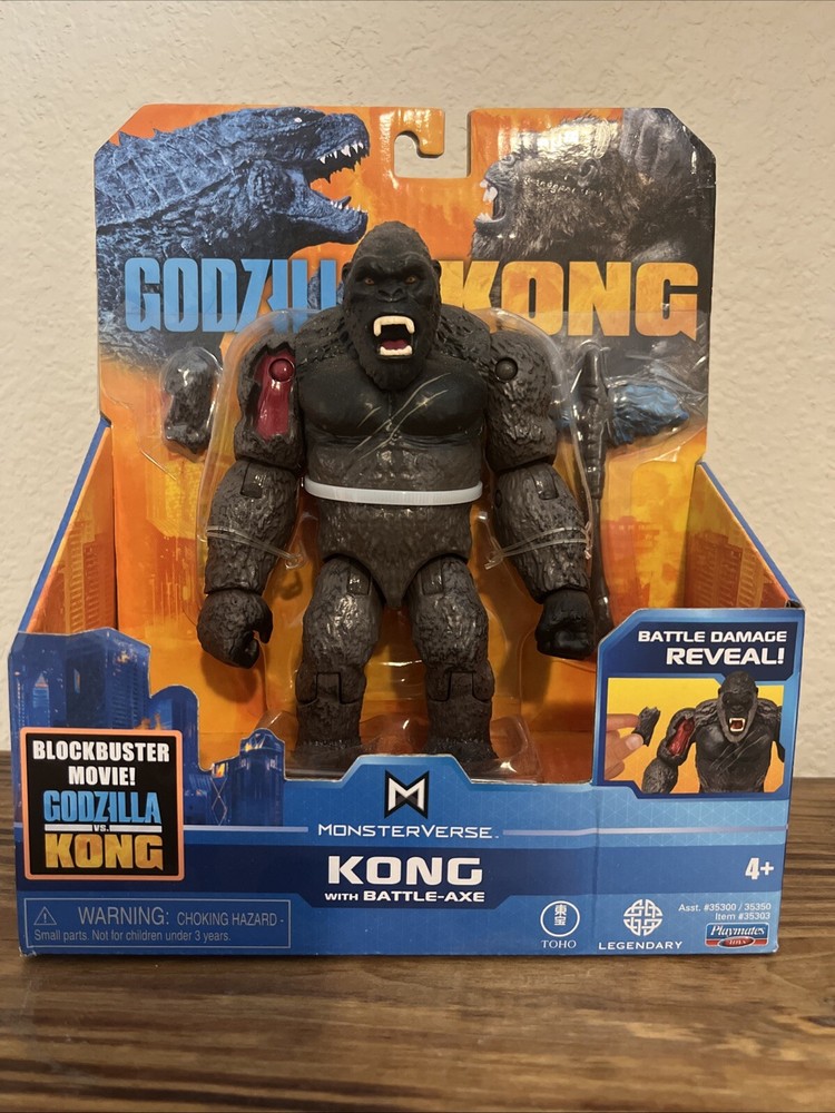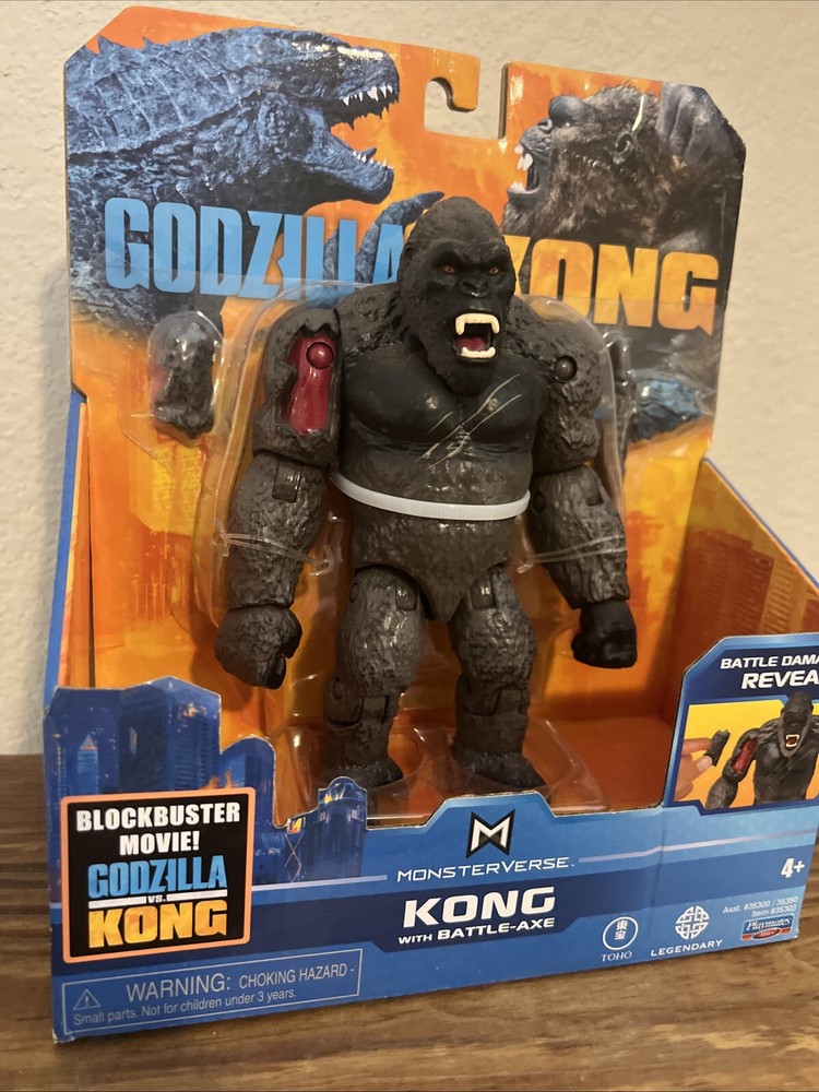 The product is a Playmates Toys action figure of King Kong from the movie Godzilla vs. Kong in the Monsterverse series. This custom figure comes with battle damage and is made of plastic, suitable for children aged 3 and up. The unassembled kit/set features a battery-powered design, making playtime more exciting for fans of the TV, movie, and video game theme. King Kong is portrayed in a 1:500 scale, adding to the realism of this action figure for collectors and enthusiasts.