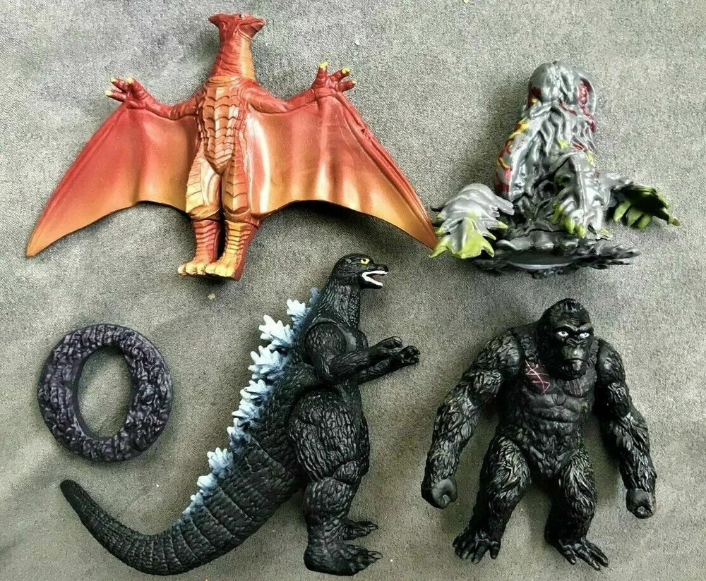 You are bidding on a set of monster figures from GODZILLA. You get GODZILLA, RODAN, KING KONG, and HEDORAH (SMOG MONSTER) w/ base. Figures range in size from 3.25" to 5". Your figures arrive NEW - NEVER PLAYED WITH! You get ALL FOUR figures!