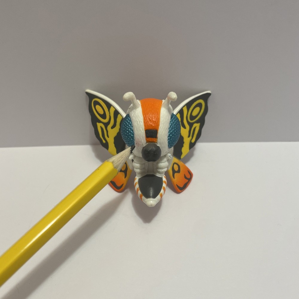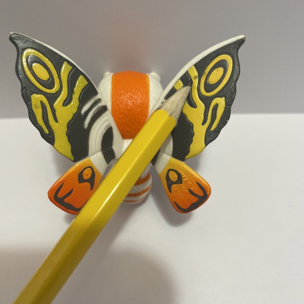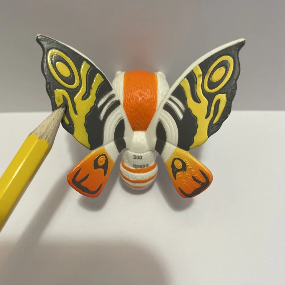 GODZILLA figure CHIBI style 4" MOTHRA moth Monster Kong Jet Jaguar toho Action Good Used Condition - smudges on face wings as pictured (pencil points to marks)