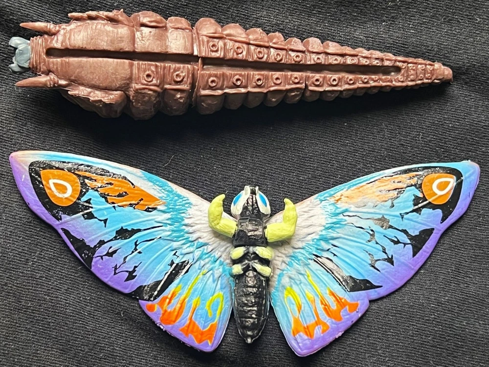 You are bidding on a set of MOTHRA and MOTHRA LARVAE figures from GODZILLA. Mothra Larva is approximately 5" long and Mothra is approximately 5" long from wing tip to wing tip. You get BOTH figures!...
