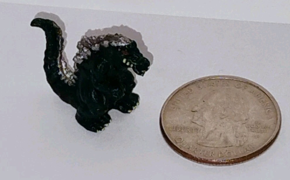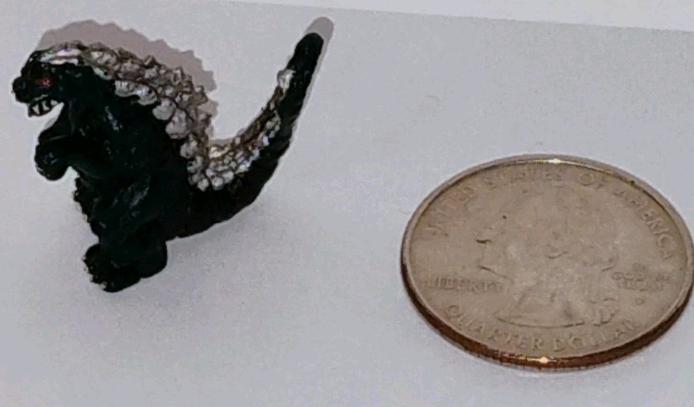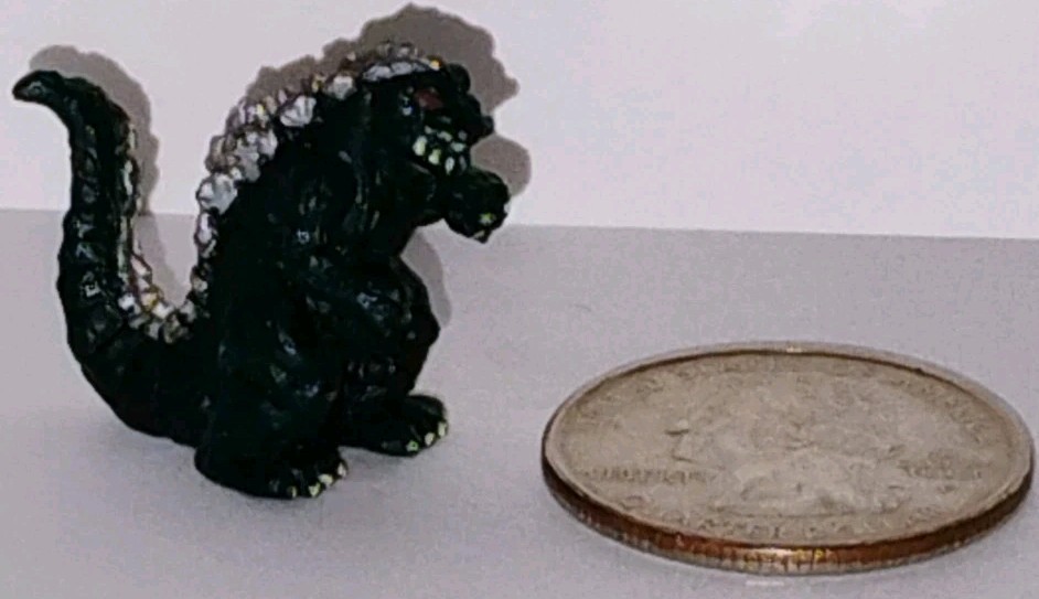 The GODZILLA vs Ghidorah micro battle playset by Trendmasters is a vintage action figure from the 1990s inspired by the Godzilla franchise. This mini figure depicts Godzilla in a green color and is made of vinyl plastic, capturing the essence of the iconic character. With its original design this collectible piece is a must-have for fans of Godzilla and action figure enthusiasts alike. The playset offers a nostalgic look back at the popular TV show and movie series from the 1990s, making it a valuable addition to any collection. All our items come from a smoke-free pet-free environment. Please see pics for the exact item you will receive. Don't forget to check out our store for more great rare finds.