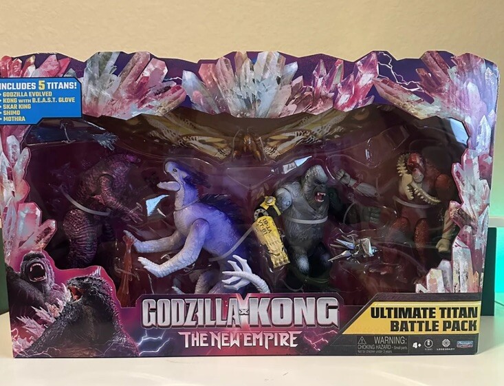 YOU ARE BUYING A BRAND NEW, FACTORY SEALED GODZILLA X KONG THE NEW EMPIRE ULTIMATE TITAN BATTLE PACK 5 FIGURE SET! IT INCLUDES GODZILLA EVOLVED, KONG WITH BEAST GLOVE, SKAR KING, SHIMO, AND MOTHRA! THE PACKAGING IS IN EXCELLENT CONDITION, SEE PICS!