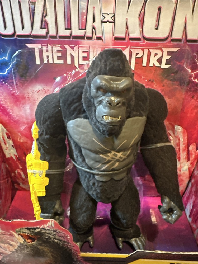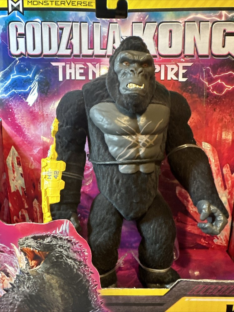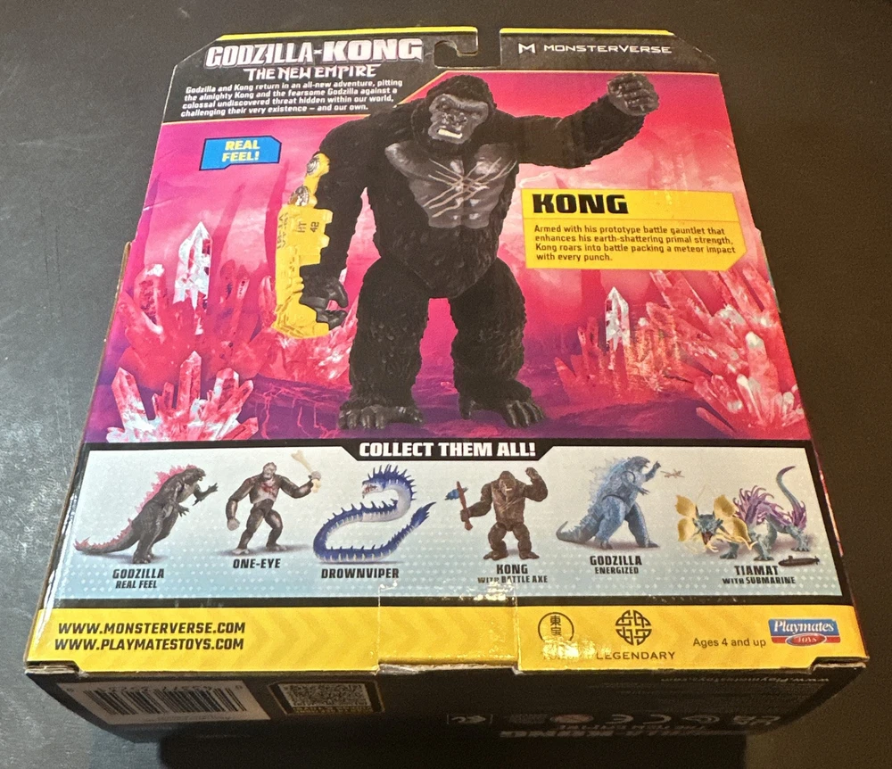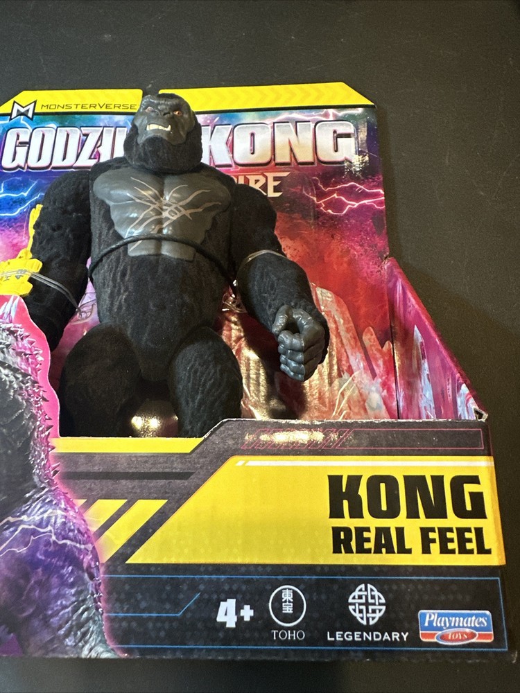 The product is a 6" Kong Real Feel action figure from the Godzilla x Kong movie "The New Empire." It is made of plastic, part of the Godzilla franchise by Playmates Toys. The figure is from 2024 and is unopened in its original packaging. It features multicolor detailing and is suitable for all occasions.