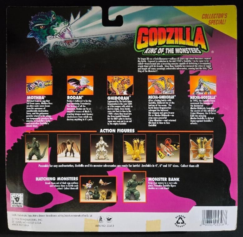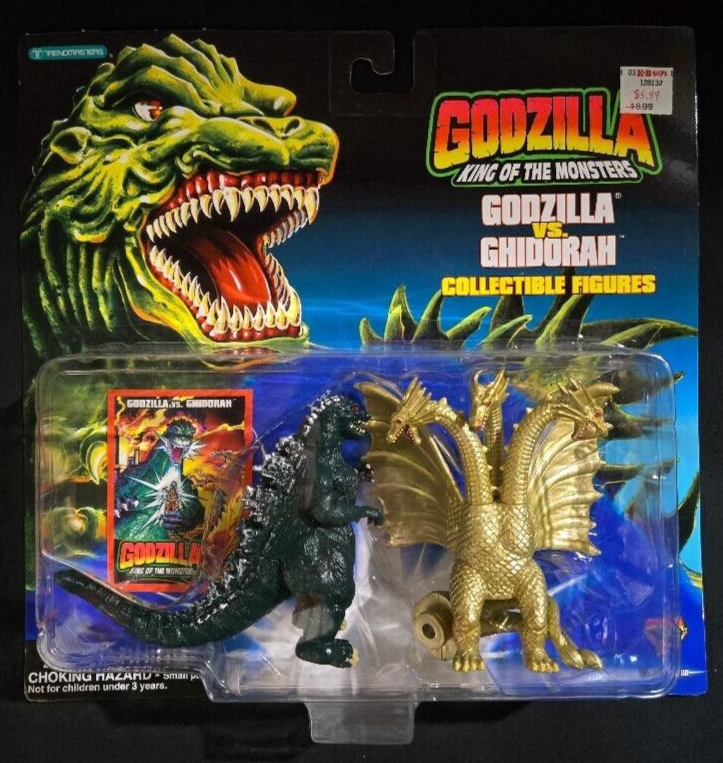 l ~GODZILLA~KING OF THE MONSTERS~ TRENDMASTERS~TOHO CO LTD~ ~GODZILLA & GHIDORAH~4"ACTION FIGURES SET~ PRODUCTION YEAR~1994 ~LONG SOLD OUT & EXTREMELY RARE~ Item Description: Inspired from the Kaiju / Monster Universe, we present the Godzilla & Ghidorah Action Figure Set! Trendmaster is proud to present this Godzilla & Ghidorah Action Figure Set for their Godzilla, King of the Monsters, Daikaiju Series. Intricately sculpted by the creature artisans at Trendmasters. The Godzilla & Ghidorah Action Figure stands at approximately 4"Inches in Height and weighs approximately 3 lbs. boxed. Godzilla is colored in his iconic Green tones and Ghidorah, the Three Headed Dragon is colored in its iconic Golden visage. Of course Godzilla & Ghidorah are meticulously hand painted & finished to the highest standards which Trendmasters is known for. This amazing Action Figure Set was produced in 1994 and long Sold Out at Trendmasters and their Distributors. So do not falter on your quest to capture these Japanese Monsters for your Kaiju Collection! The Godzilla & Ghidorah Action Figure Set is in brand new, near mint condition, sealed in their original J-Art Card with Blister pack. They comes directly from the manufacturer's Monster Island warehouse with a KayBee price sticker. GODZILLA & GHIDORAH are in STOCK & ready to RUMBLE! Payment Details: We accept payment through Paypal. Please contact us for other payment arrangements. Buyer must contact seller within 3 days of auction end. Payment is due within 7 days of auction close or item will be relisted. Please, Serious Buyers Only! Shipping Details: For this Amazing Auction all domestic shipping will be carried by UPS Ground Service. The winning buyer agrees to $14.95 for Shipping & Handling (insurance included) to anywhere in the continental United States. Alaska, Hawaii and Puerto Rico will have additional S&H charges. For International buyers, we are only using the eBay Global Shipping Program. International buyers are responsible for their Countries duties, taxes and fees associated with International shipping. For all US buyers, if your purchased items are damaged or lost during shipment, we will send all necessary documentation to file a claim with the specified carrier (UPS). *Shipping & Insurance charges are not refundable. We will gladly refund your purchase price after the specified carrier settles the claim. For all international buyers, if your purchased items are damaged or lost during shipment, we will refund your purchase price only after the specified carrier (eBay) settles the claim. Please post all questions prior to auction end as all sales are final. Feedback Details Feedback ratings are an integral part of the eBay Community. We take great pride in providing the finest quality collectibles for the most discriminating buyers. All our items are carefully inspected & professionally packaged. Our feedback rating is very important to us, so please feel free to check our reviews to clarify our dedication to all our customers. After you receive your item and the joy & euphoria has temporarily subsided, we would appreciate a moment of your time to leave favorable feedback for us. This lets us know the item has arrived safely and you're already enjoying your treasured item. We will in turn, gladly leave favorable feedback for you. If you are not completely satisfied with your purchase, please contact us immediately and we will try to achieve an agreeable solution. Good Luck & Happy Hunting!