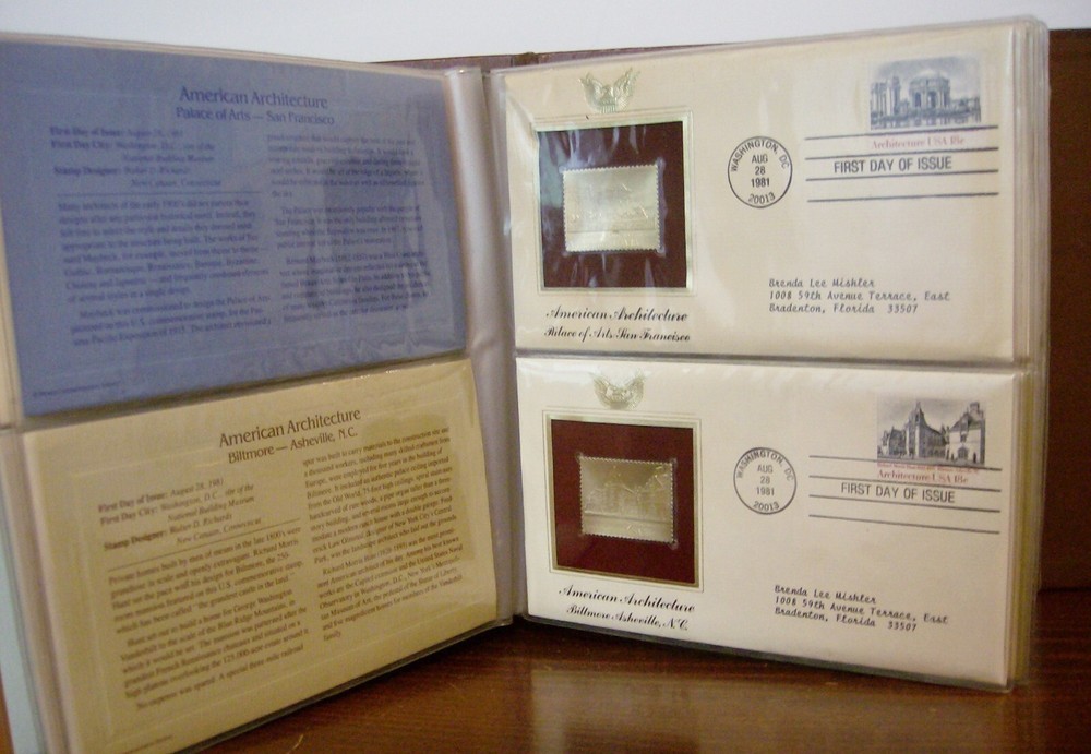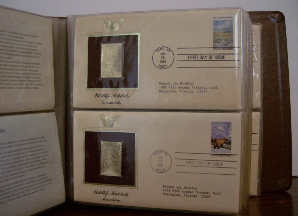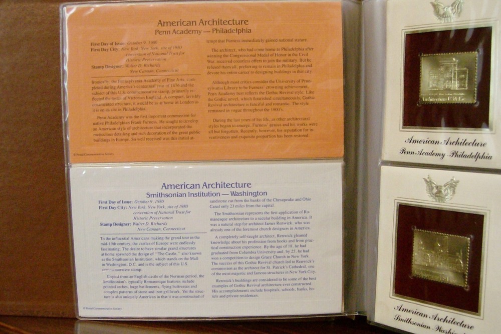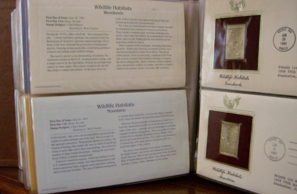 GOLDEN REPLICAS OF UNITED STATES STAMPS 42 TOTAL Proof replicas are on a gleaming surface of 22kt. gold These Golden Replicas of United States Stamps is a tribute to historical events and figures, plated in a stunning gold color spanning the years 1980 to 1981. They are a testament to the rich cultural and political tapestry of the era, each canceled on its first day of issue, adding authenticity to their used quality. I have many other items listed including trains (all scales), collectibles and MUCH MORE