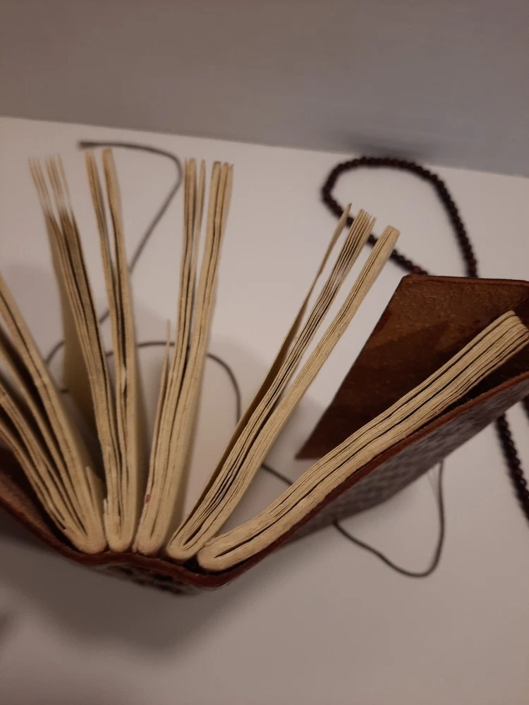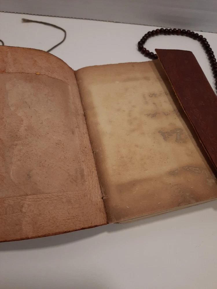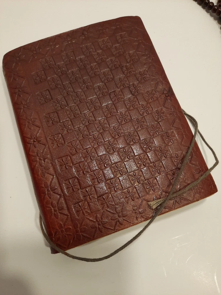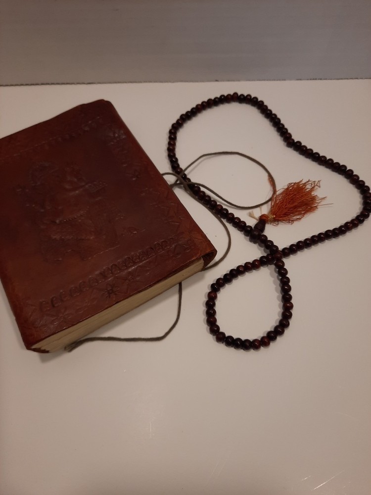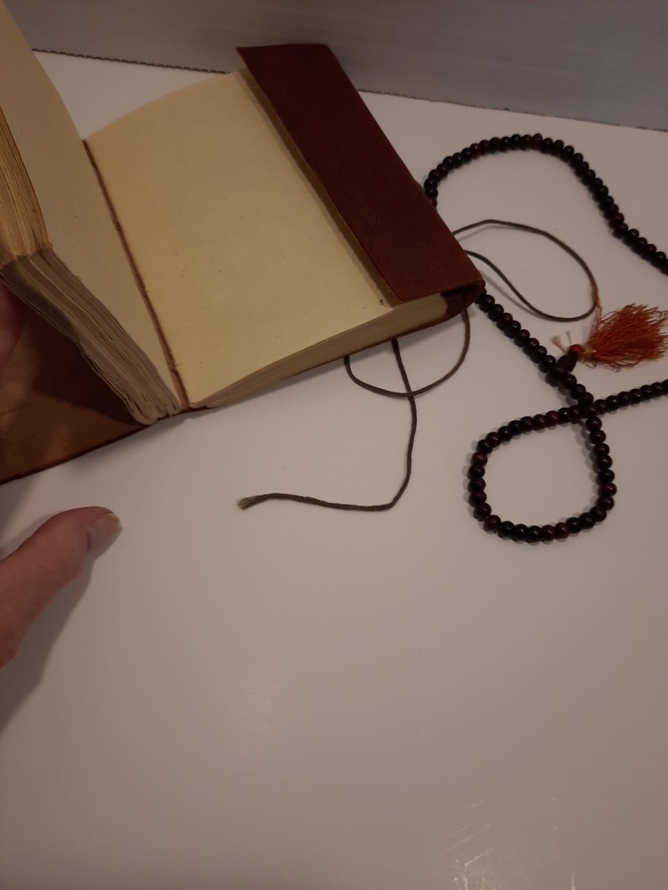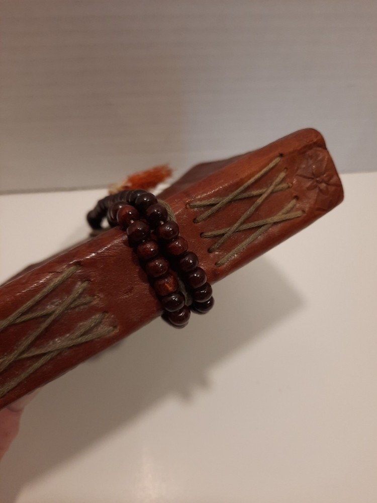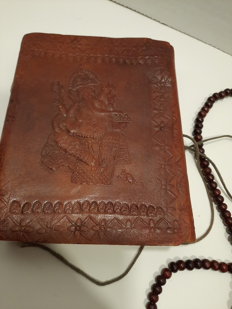 A Ganesha 6 x 4.5" Leather Bound Personal Journal/Diary-Notebook/Sketchbook is the perfect choice for anyone looking to write down their thoughts and ideas. With a beautiful leather cover and ample space to write, it is perfect for use in a variety of contexts, including as a personal diary, notebook, or sketchbook. Approximately 5-8 pages appear to be somewhat removed but it does not effect the appearance or the construction. Found as is at an Estate Sale...with the beautiful Buddhist Wood Prayer Beads as a closure. Gorgeous! Shipped with USPS to US only. Please review the listing thoroughly and feel free to ask any questions. All items are sold pre-owned as is. Offers welcome. Thanks!