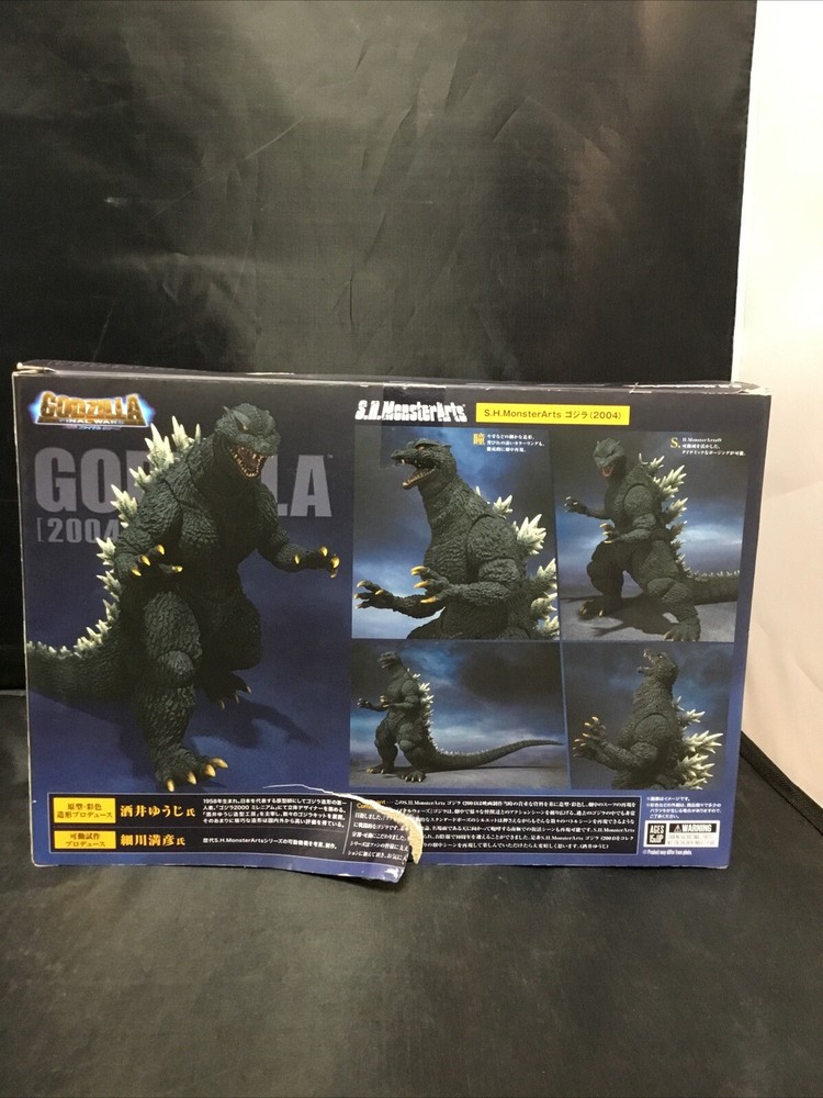 Genuine Bandai S.H.Monsterarts Godzilla Final Wars Godzilla Figure (2004) This Genuine Bandai S.H.Monsterarts Godzilla Final Wars Godzilla Figure (2004) has never been used Being sold as used due to packaging damaged (BOX HAS SALE STICKER, DENTS, CREASES AND IS RIPPED IN A FEW SPOTS) If you want to display this figure & do not care about the condition of the packaging, this is a way of getting it for a cheaper price It is a 100% Authentic Bandai Product It is the Godzilla Final Wars Godzilla Figure (2004)