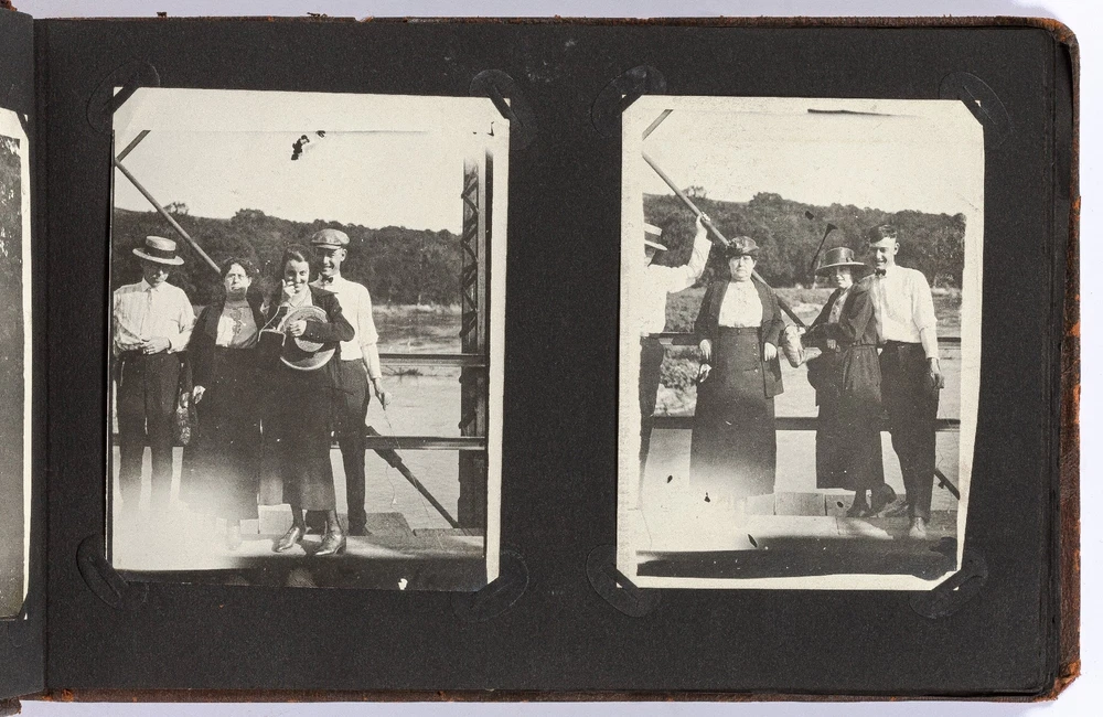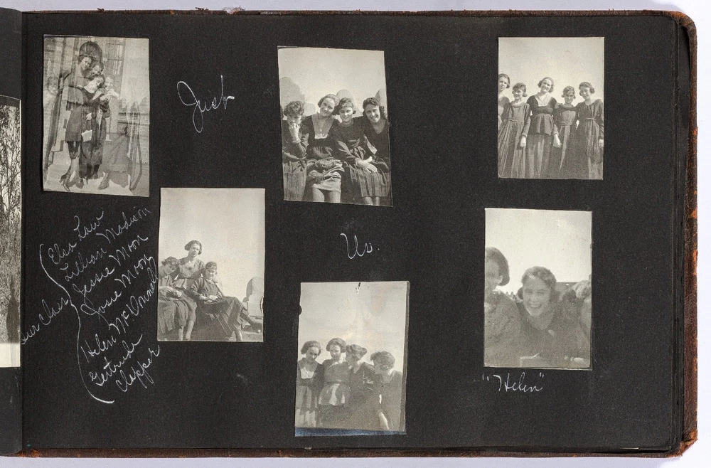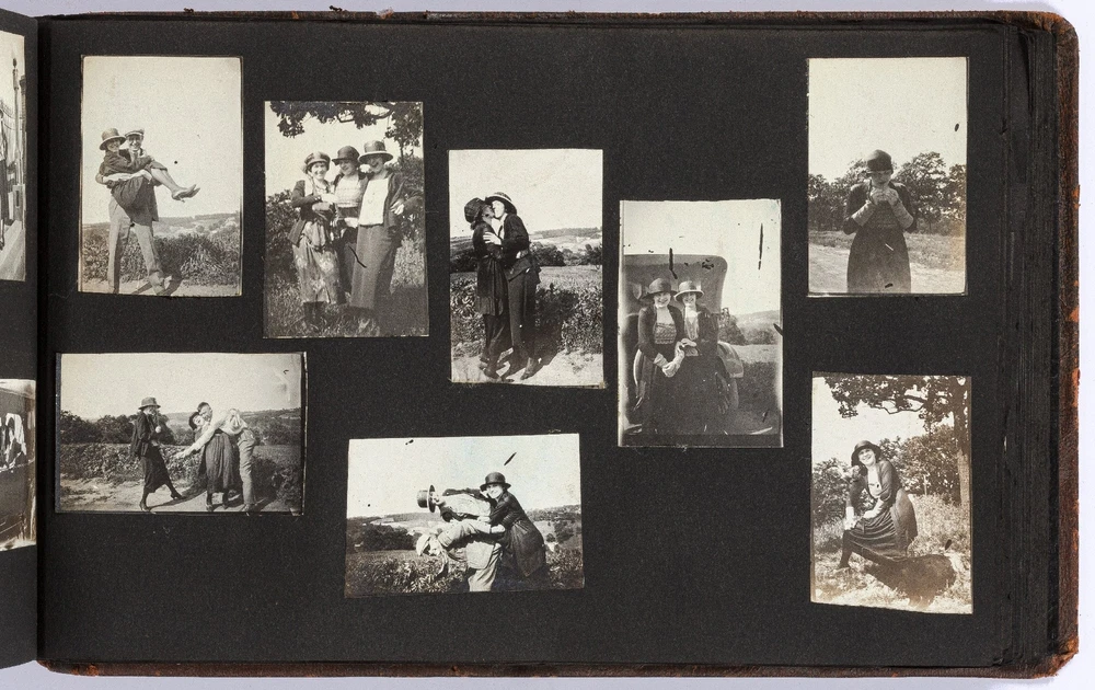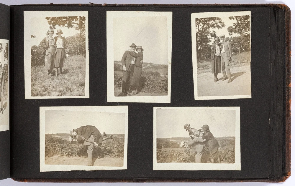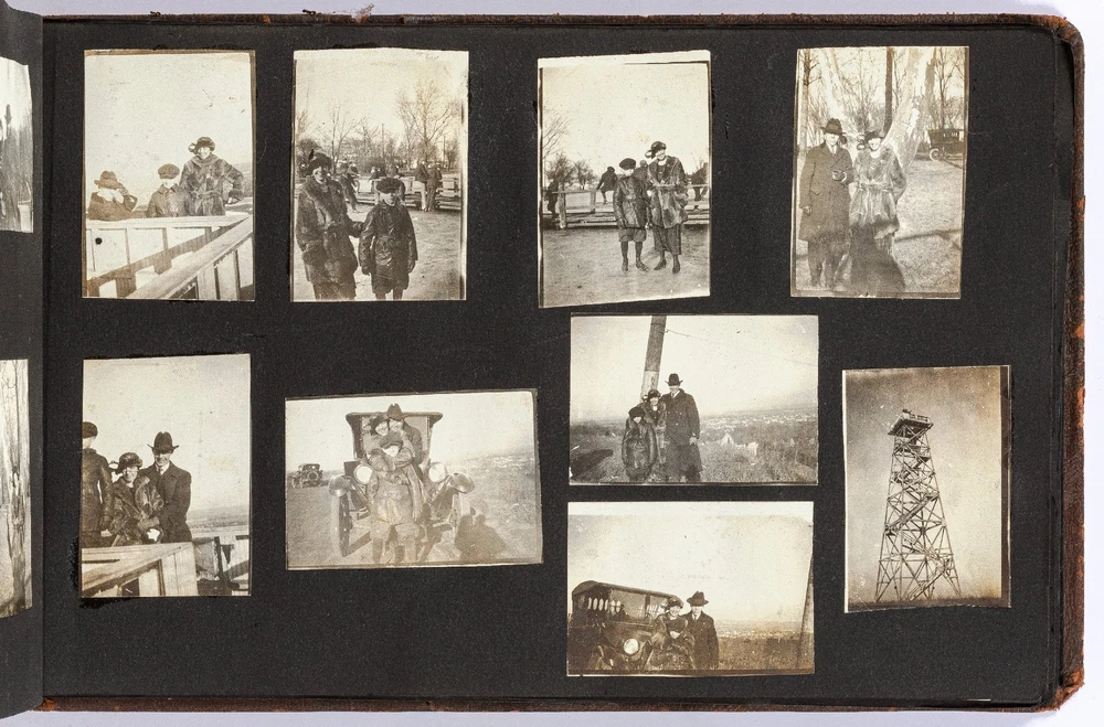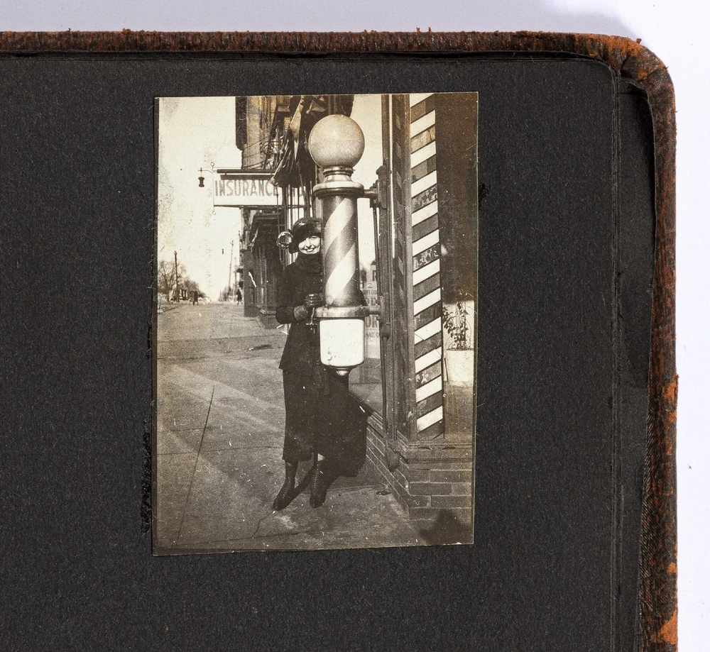 [Photo Album]: Telephone Operator in Nebraska, 1920 Author: CLAPPER, Gertrude Title: [Photo Album]: Telephone Operator in Nebraska, 1920 Publication: Nebraska: 1920 Description: Softcover. Oblong quarto. Cord-tied flexible leather boards. Approximately 370 gelatin silver photographs, a small card, and two newspaper clippings. Photographs are mostly mounted, a handful are laid in. Rubbing on the boards, but sound and very good. Some of the images exhibit some wear to the negatives that has transferred onto the positive images - presumably amateurishly printed - else near fine. Various sizes. Sparsely captioned in white album ink mostly indicating different locations in Nebraska, all dated in 1920. The small clippings are informative - one noting a farewell party for Gertrude Clapper (b. 1887) from Marengo, Iowa, who left for "Omaha where she has accepted a position as operator in the long distance office," the other showing a group picture of the Omaha operators. The small card mounted next to the clipping is signed by the attendees of the party, as enumerated in the clipping. The images are cheerful and pleasant, following Gertrude and her young (30-something?) friends on various outings, with locations noted as Gretna Fish Hatchery, Tikamah, Plattesmouth, Fremont, Nebraska City, Omaha, and a few of Marengo and Fairmount Park, Iowa. There are a few images of "The Telephone Force" and "Our Class at Omaha," presumably while learning the intricacies of the operator's trade. Many of the young woman are depicted posing cheerfully by the side of the road, being lifted and carried about by gentlemen friends, tumbling over each other, and posed in front of road signs, a barber poll, and a movie poster, and in bathing costumes. One is posed by the Walnut Hill Pumping Station in Omaha. In one image two young women embrace in a passionate (albeit probably feigned) kiss. The gentlemen, including Gertrude's future husband, Ridgeway W. Ball, are shown pretending to drink directly from a whisky barrel, in a Shriner's outfit and fez, posing with statues, and a couple of Ball in his WWI military uniform. An early panoramic image shows a row of biplanes at an airfield. The last few images, possibly a couple or few years later, show a thriving city with a museum, public gardens, and a large stadium under construction, possibly in Omaha. Presumably anyone with knowledge of the local architecture would be well-suited to investigate the album more thoroughly. A jaunty and interesting geographically-specific insight in to a young woman's life and local travels in the early 1920s. Seller ID: 439353 Subject: Americana, Photography Between the Covers Between the Covers has been selling books for more than 30 years. Today we offer a wide ranging inventory, from Modern First Editions to General Used Books to Rare Archival Collections. We are active members of the Antiquarian Booksellers' Association of America (ABAA) and the International League of Antiquarian Booksellers (ILAB) . Terms All orders ship within two business days. Standard mail is USPS Media Mail. Expedited and international shipping are also available. We offer combined shipping on multiple orders. All books are guaranteed to be as described or they may be returned within 30 days of receipt for a full refund. This listing was created by Bibliopolis.