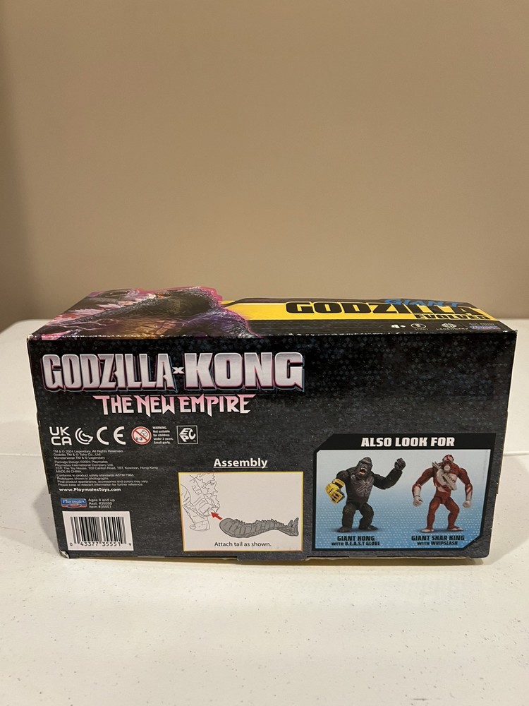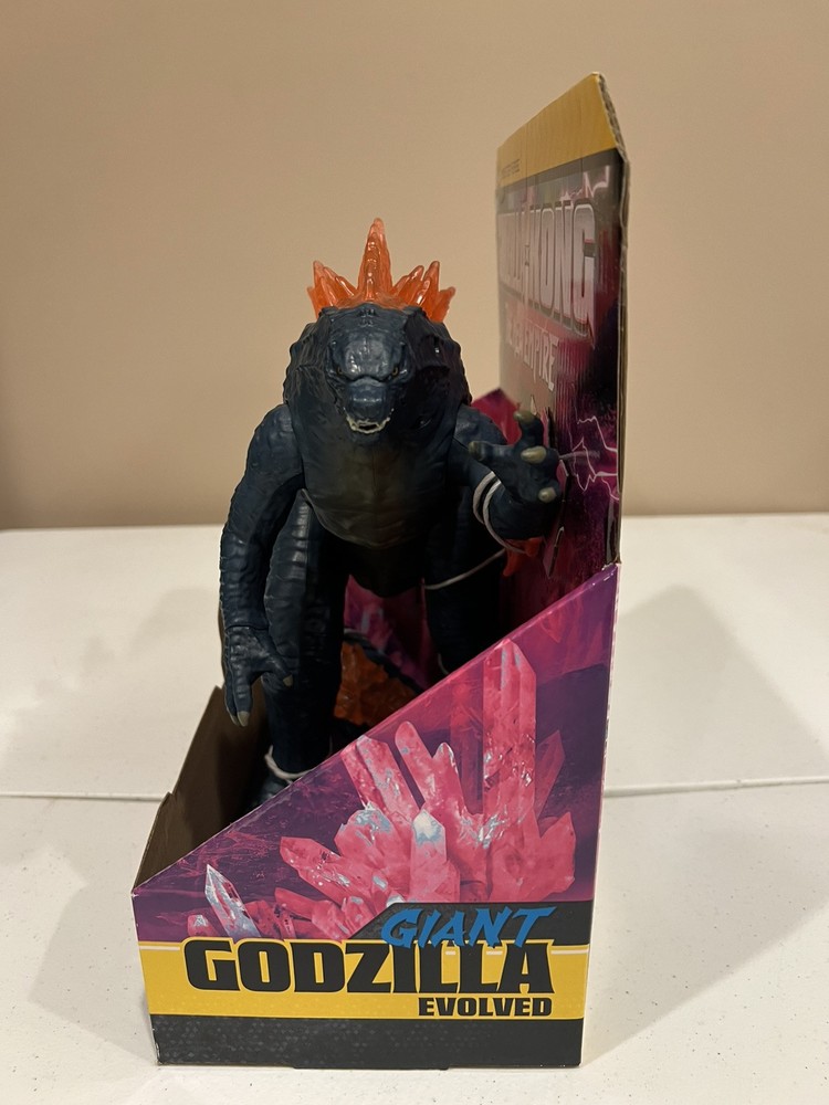 Giant Godzilla Evolved 12” Figure from the Godzilla x Kong The New Empire 2024 series. This original action figure features poseable arms, legs, and tail, an opening mouth, and translucent red spine plates. It is made of ABS plastic and stands at 12 inches tall. Perfect for fans of Godzilla and Kaiju, suitable for ages 4 and up. This collectible item is brand new and part of the Godzilla Monsterverse franchise.