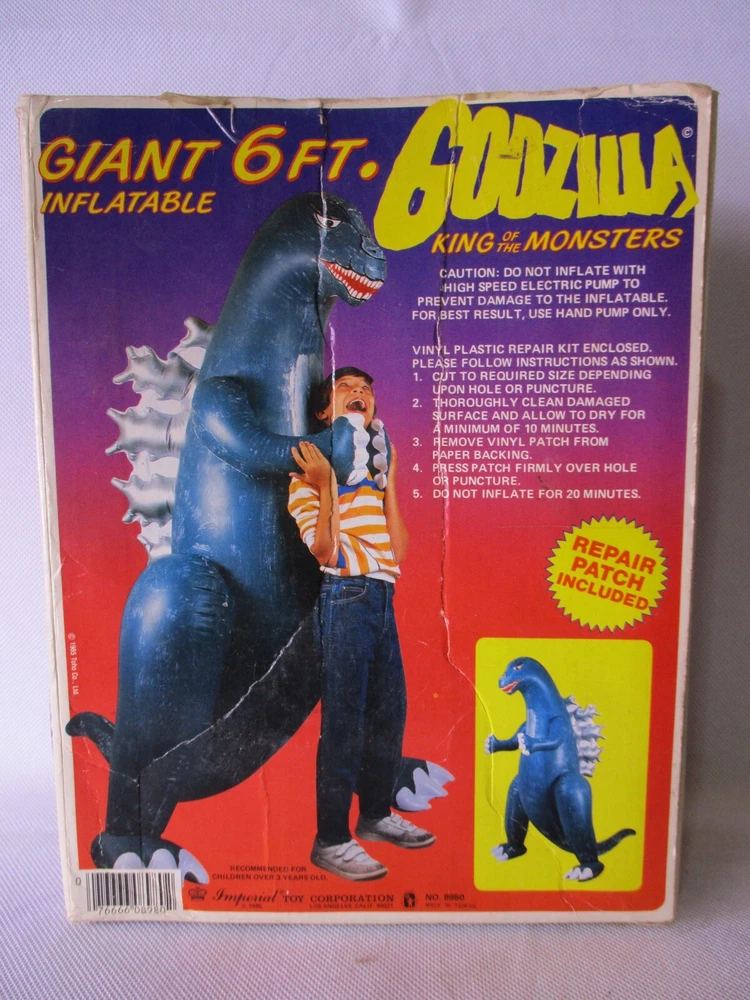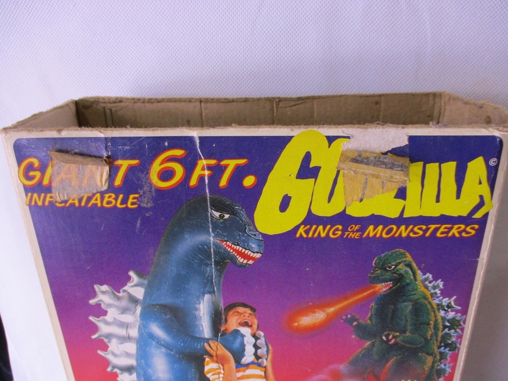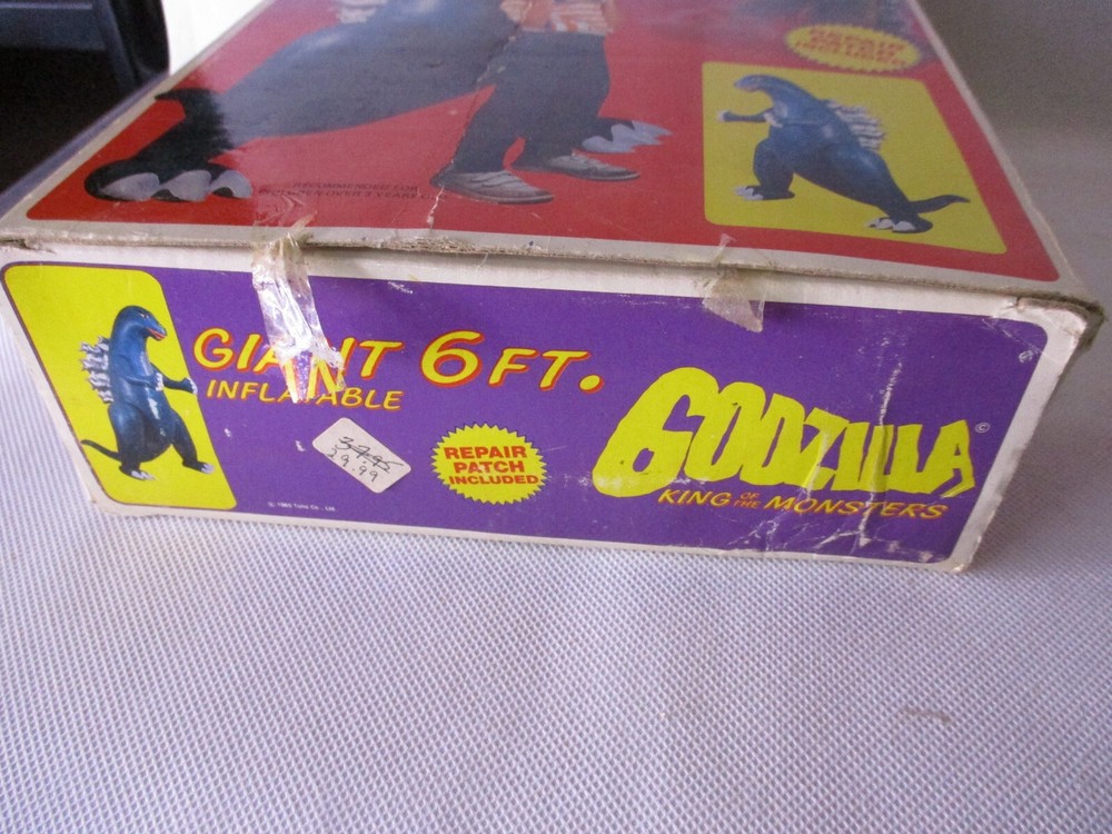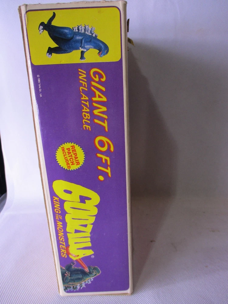 Giant Inflatable Godzilla 1985 TOHO Co 6' BOX ONLY, top is missing, has some tape and storage wear, does include the repair kit, no Godzilla included, but if you have one now you can get the box to go with it. 501600 Hi! And thanks for looking. Hope I can send something good your way. I pack items with care and work my best to get items to you in the best of condition. I have been collecting for over 30 years and do my best to describe everything as well as possible. If I missed something feel free to ask.