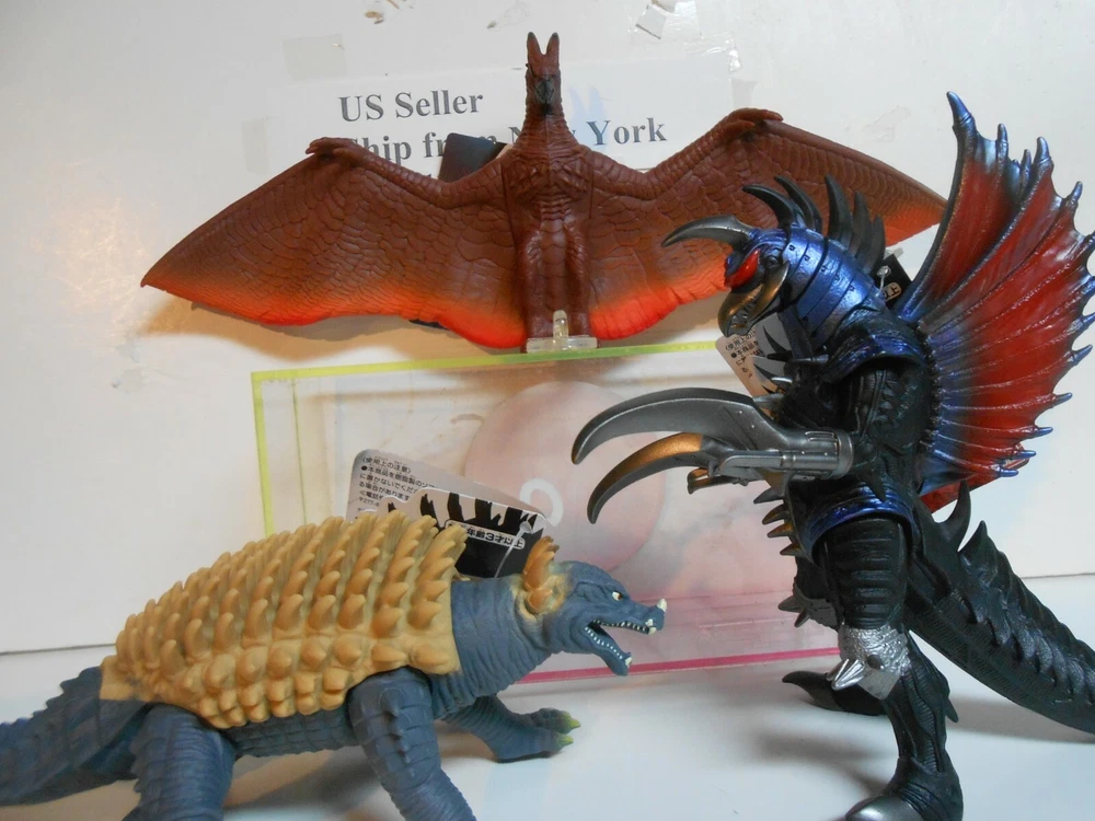 (New set of 3) You are bidding a set of 3 Authentic Brand New Japan Bandai include one Godzilla Bandai Japanese 6 Inch series Gigan Vinyl Figure 2004 Final Wars version with new tag . It is original Bandai reproduct 2019 Gigan ,about 6.5" tall and 9" long tail (see photo),one Godzilla Bandai Japanese 6 Inch Vinyl Figure 2005 Final Wars Anguirus, Anguirus about 4.5" tall and 12" long and one New 2019 Rodan 4.5" tall and 12 " wings open, very detail monster, shipping USPS First Class mail with tracking in US.Please check us the other godzilla figures for"Holiday Sale " and combine shipment to save your shipping cost. Powered by eBay Turbo Lister The free listing tool. List your items fast and easy and manage your active items.