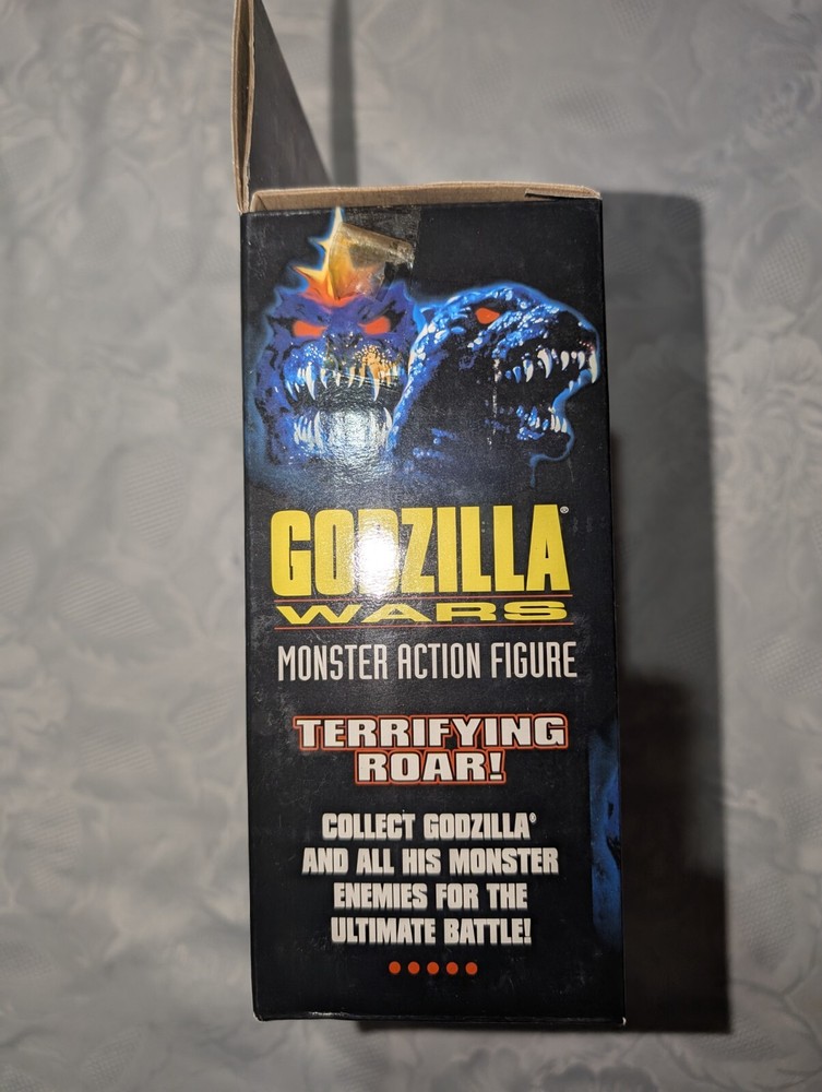 The product is a Gigon Trendsetters Godzilla Wars toy released by Trendmasters in 1995. It is a Godzilla-themed toy recommended for ages 4 and up. The toy is still in its original box, unopened, and is designed to roar like Godzilla.