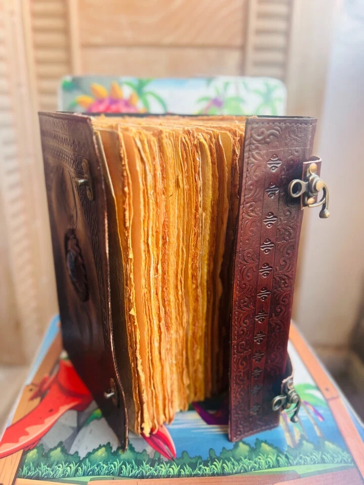 Beautiful Goat Head Leather bound Journal NEW All Sales Final All Offers Considered All Items Sold As Is Shipped Via USPS Media Mail...