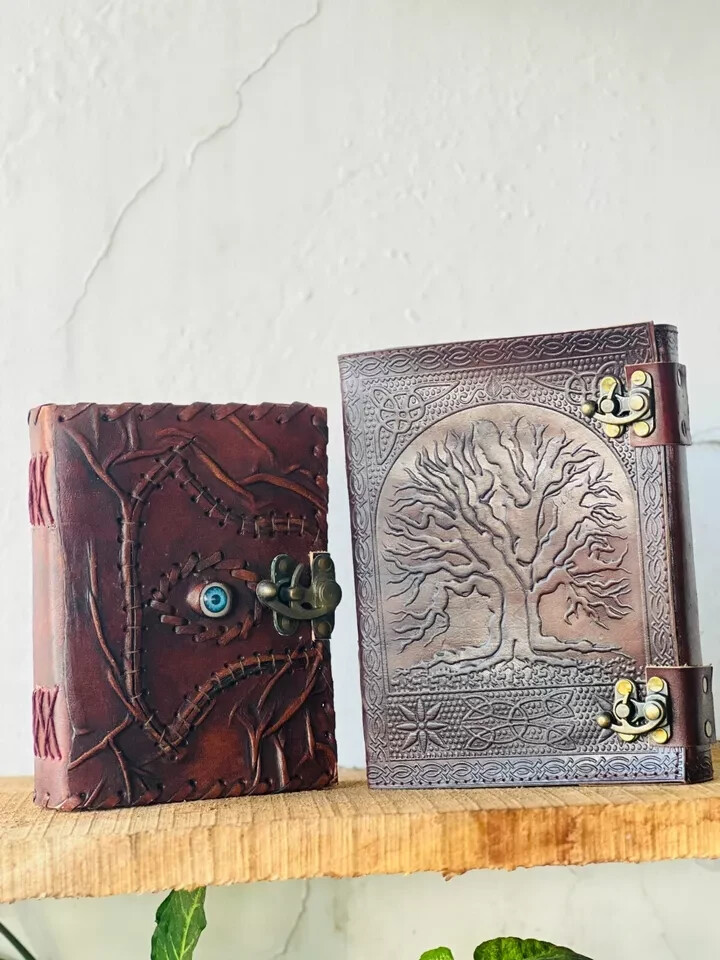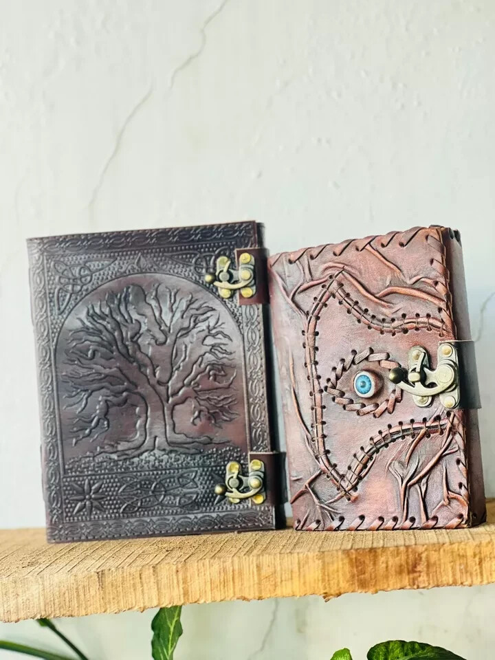 Handmade Goat Leather Journal with Tree of Life and Eye Design