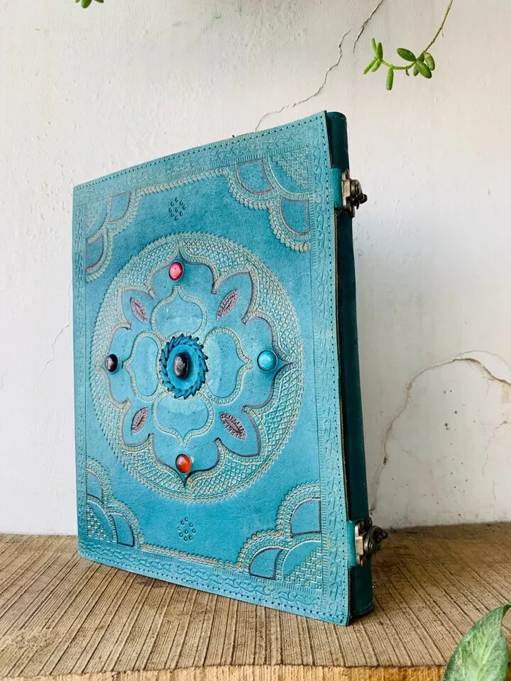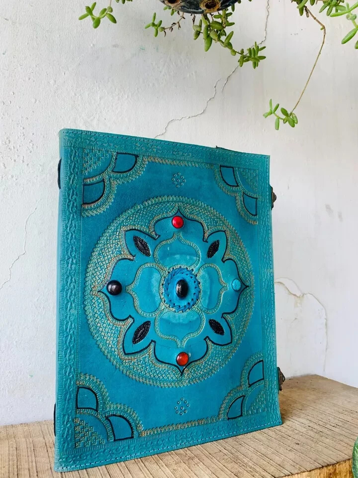 Handmade Goat Leather Journal with 7 Chakra Stones Toxic-Free Special Deal
