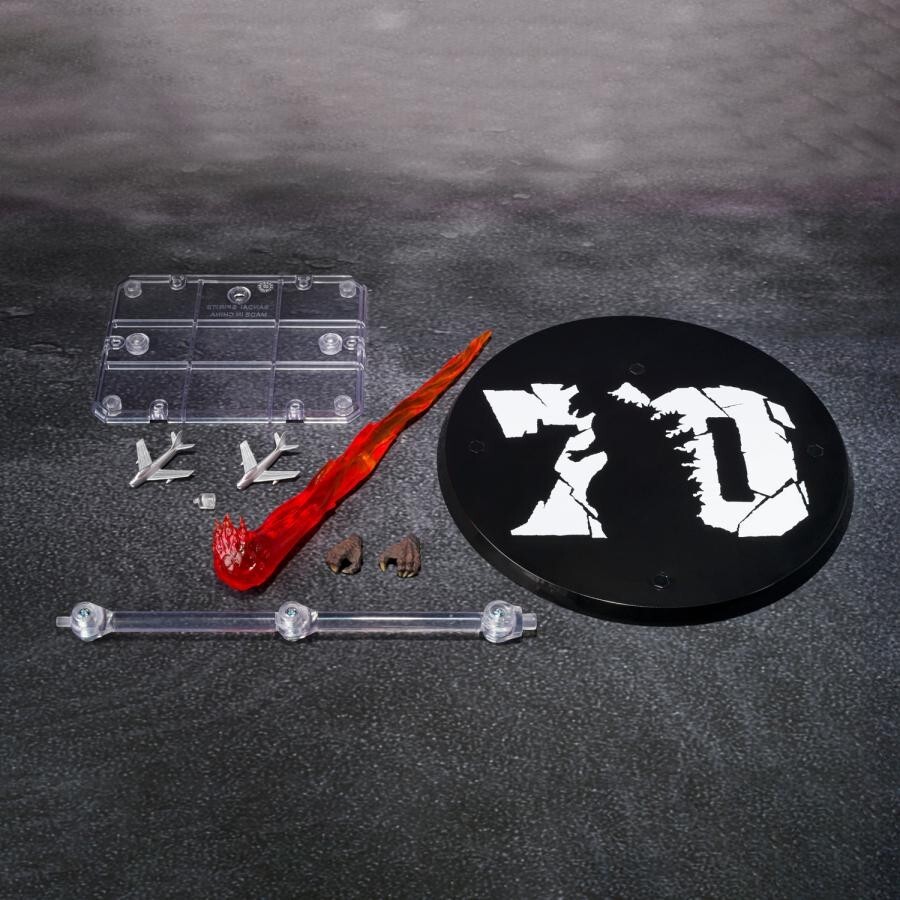 As Seen in His 1954 Debut, The Mighty Godzilla Returns in Bandai's "Shmmterarts" action figure Collection - Painted as he an appeared on the Original Film Poster to commemorate The Film's 70th Anniversary! This figure was sculpted and colord by Godzilla's main sculptor, Yuuji Sakai! The figure 'S Meticulous Details Recreate The Impression of the Costume Worn On Screen at the Time. Inter -Argeable Hands are included Godzilla Can Hold the Included Plane, and a Radiant Heat Ray Effect Part is Also Included So You Can Display Him AS HE APPARED IN THE Poster! To Special Commemorative Base is Also Included. As Seen in His 1954 Debut, The Mighty Godzilla Returns in Bandai's "Shmmterarts" action figure Collection - Painted as he an appeared on the Original Film Poster to commemorate The Film's 70th Anniversary! This figure was sculpted and colord by Godzilla's main sculptor, Yuuji Sakai! The figure 'S Meticulous Details Recreate The Impression of the Costume Worn On Screen at the Time. Inter -Argeable Hands are included Godzilla Can Hold the Included Plane, and a Radiant Heat Ray Effect Part is Also Included So You Can Display Him AS HE APPARED IN THE Poster! To Special Commemorative Base is Also Included.
