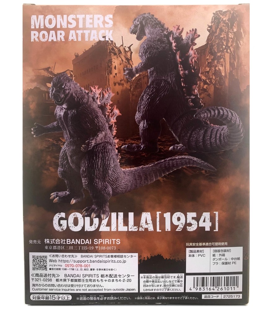 GODZILLA (1954) TOHO MONSTERS ROAR ATTACK SERIES STATUE VERSION A Based on the classic Toho film Gojira , Bandai Namco Banpresto celebrates the King of the Monsters 70th Anniversary with Godzilla 1954 released as part of their Monsters Roar Attack series of non-articulated figures. Godzilla stands approx. 5.5” tall and is highly detailed with screen accurate black-and-white paint application. BRAND NEW, factory sealed.