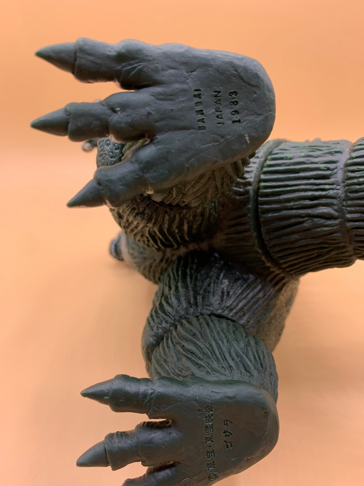 The one that started it all! After securing the Godzilla license in 1983, Bandai released the Godzilla Collection line that ran from 1983 through 1995 and featured many of the Showa and Heisei era kaiju . However, it was this massive "KingGoji" vinyl that led the charge in 1983! This Godzilla, featured in King Kong vs. Godzilla , stands 9" tall and is over 10" long from toes to tail. No tag.