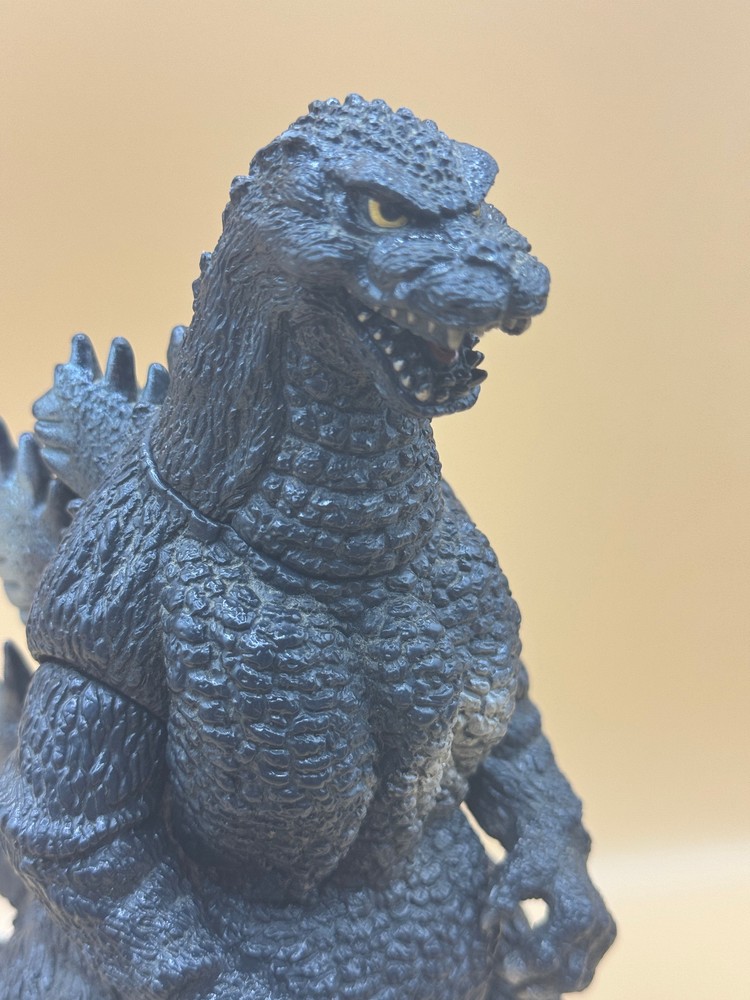 Part of the famed Bandai Godzilla Collection (1983-1995) and standing 8.25" tall and 10" long, this rendition of "Bato-Goji" from Godzilla vs. Mothra (1992) is an impressive figure. If you are trying to finalize that Heisei shelf, you need this guy! This vintage item does have some wear and tear and dirt from age. Please see photos. This item appears to have had a damaged foot (see photo) and it was glued back on. No tag.