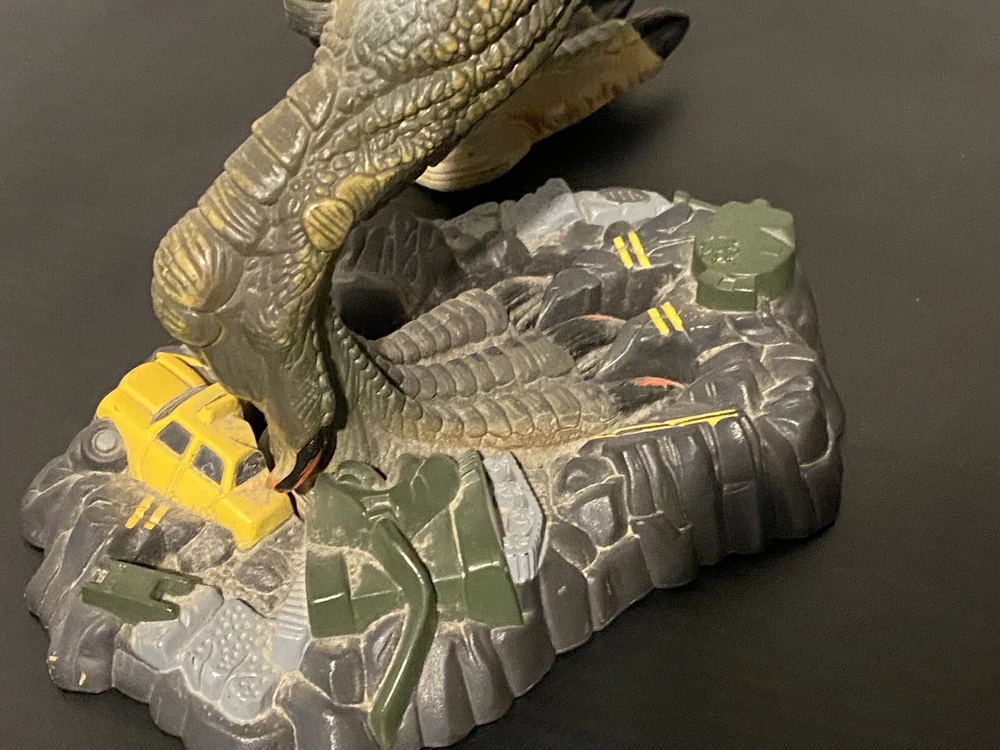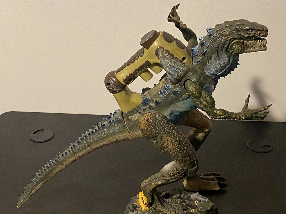 Relive the epic battles of the '98 monster mash with this Godzilla Heavy Hitter toy from Toho Inc and Toy Biz. Featuring electronic battle action, this collectible toy brings the iconic monster to life right before your eyes. With its detailed design and intricate features, it's perfect for fans of the classic monster movie genre. This Godzilla toy is a must-have for any collector of monster toys and is sure to impress fans of the franchise. With its rich history and cult following, this toy is a great addition to any collection. Don't miss out on the chance to own a piece of monster movie history.