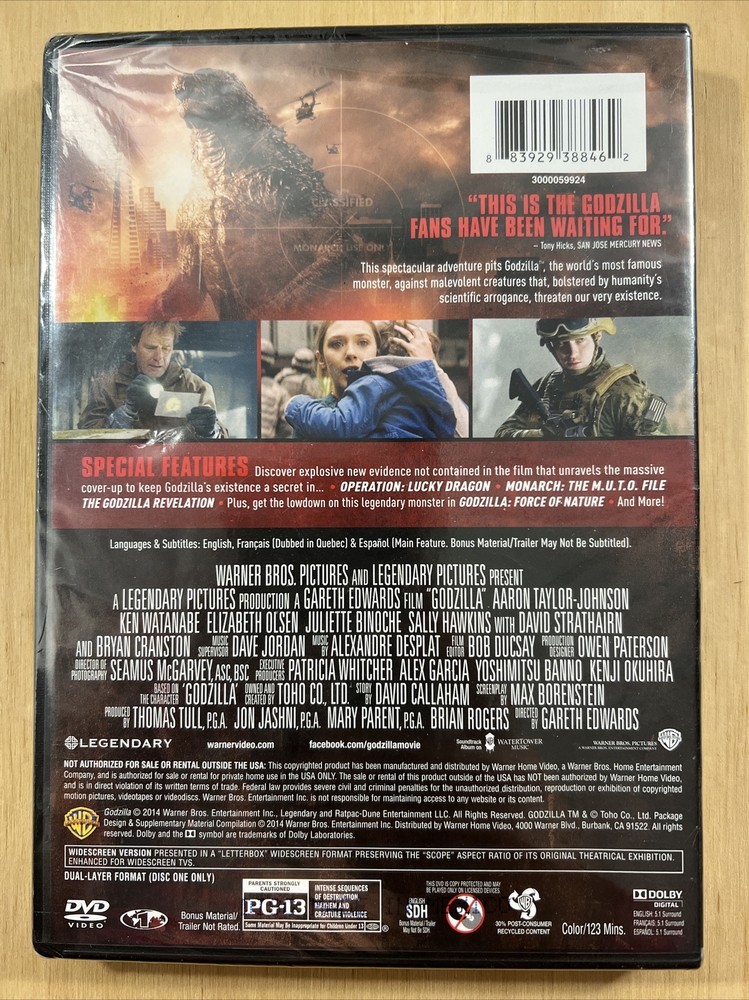 This special edition DVD of *Godzilla* (2014) is a must-have for fans! The 2-disc set delivers epic monster action with crisp visuals and great sound. The case and disc are in excellent condition, and the seller backs it with a money-back guarantee and 24/7 support. A solid buy for any collector!