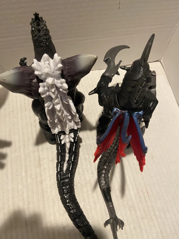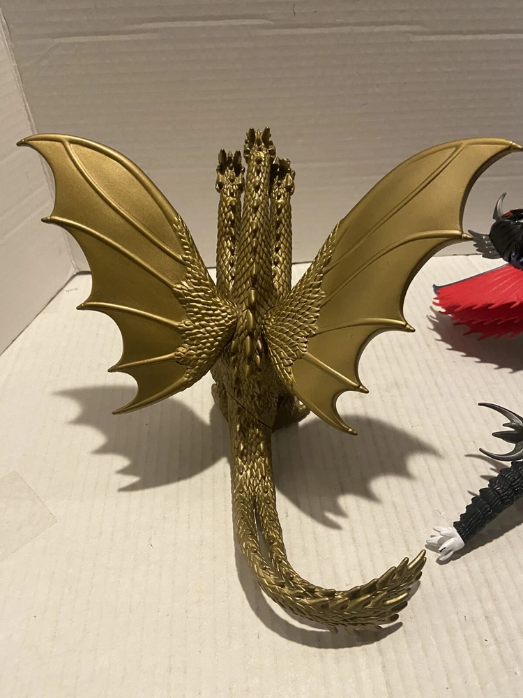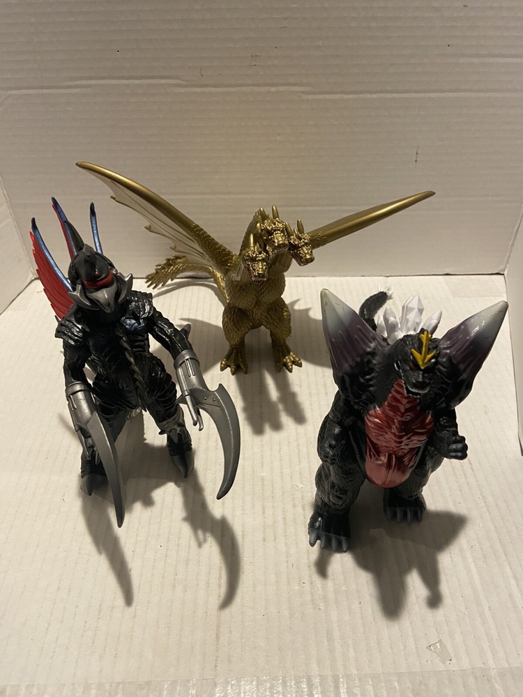Up for sale 3 Godzilla action figures. 7” tall by Playmates. Dated 2014, 2020,2020. From smoke free collection. All in good lightly played with condition. Nothing broken no repairs Ghidorah 2014 Space Godzilla 2020 Gigan 2020 ( Final Wars ) You will receive exact items in photos. All sides shown in photos. Please look at photos to see condition. Will be shipped with padding in a box with tracking number. Thank you for looking.