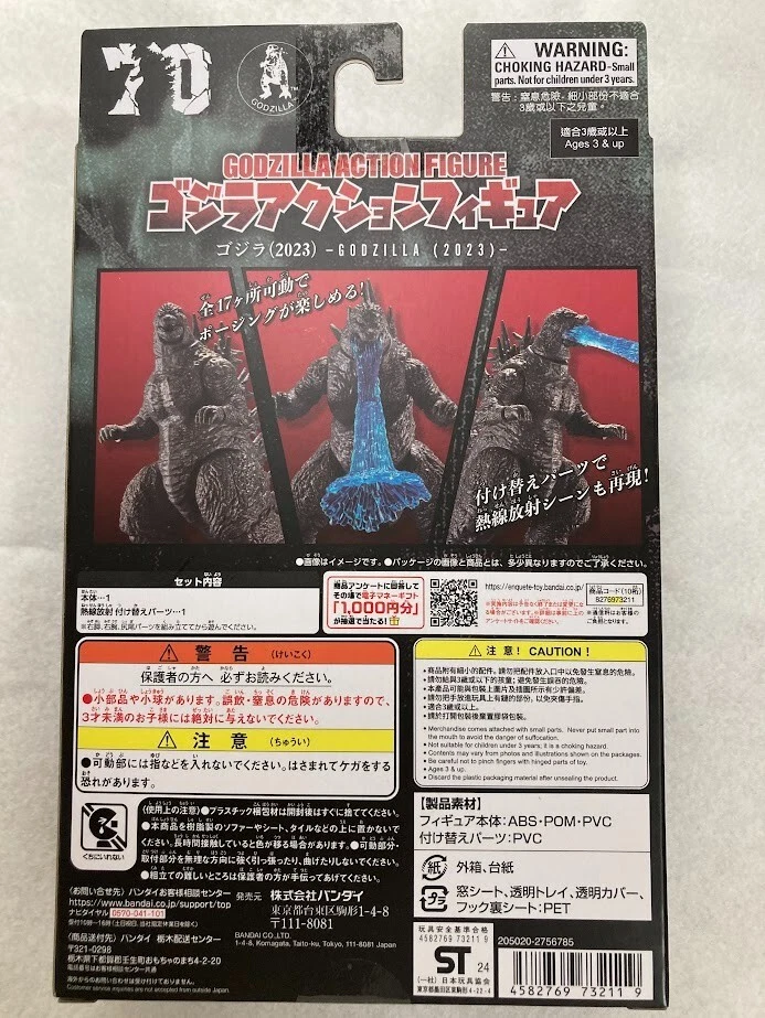 Godzilla Action Figure Godzilla -1.0 Godzilla 2023 BANDAI Description About This Items The entire body has 17 movable parts, allowing you to recreate poses inspired by scenes from the movie! In particular, the tail has three movable points, expanding the range of action. In addition, replacement parts that evoke the heat radiation effect are included! By attaching it to the mouth, you can recreate powerful scenes from the movie! - Total height: Approximately 145mm - No batteries required - Recommended age: 3 years old and above [Set contents] - Godzilla action figure Godzilla (2023)... 1 - Heat radiation replacement parts... 1 (No other items are included besides the set contents of this product.) Condition New Shipping Shipping is only available to the address registered in eBay. If you want us to send another address, please change your address on eBay and then place an order. Shipping is available from Monday to Friday. Weekends are not available because freight (shipping) companies are closed. We do not mark merchandise values below value or mark items as “gifts” – Japan, US and International government regulations prohibit such behavior. About Importer's Obligation Import duties, taxes, and charges are not included in the item price or shipping cost. These charges are the buyer's responsibility. Please check with your country's customs office to determine what these additional costs will be prior to bidding or buying. Thank you for your understanding.